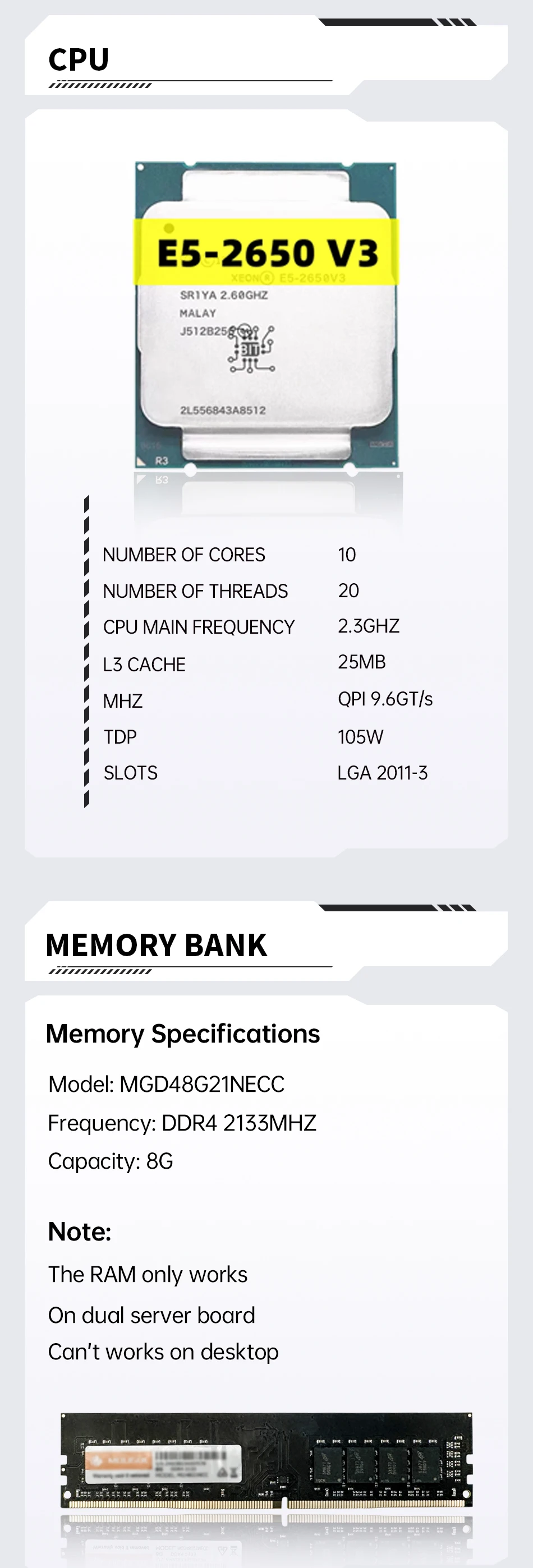 [CPU]:1 * Intel Xeon E5 2650 V3 CPU