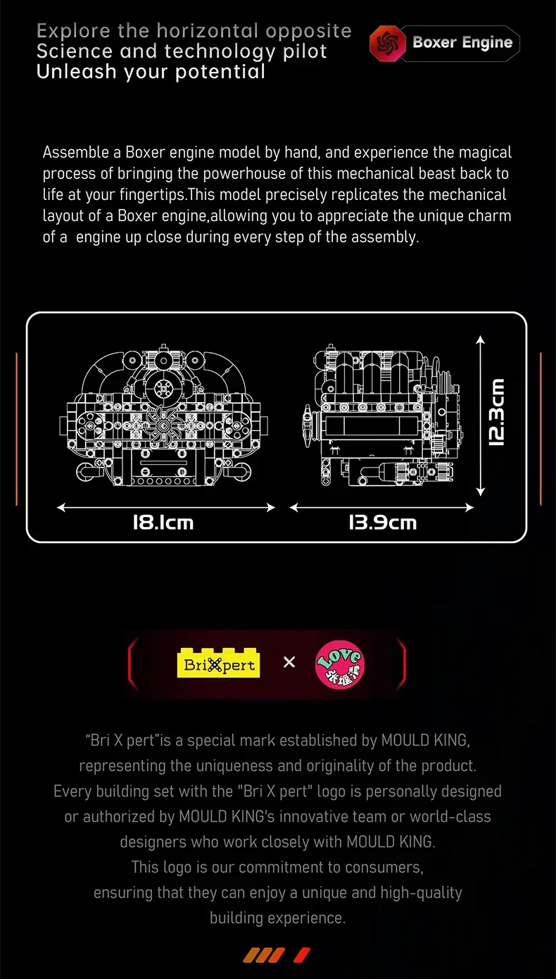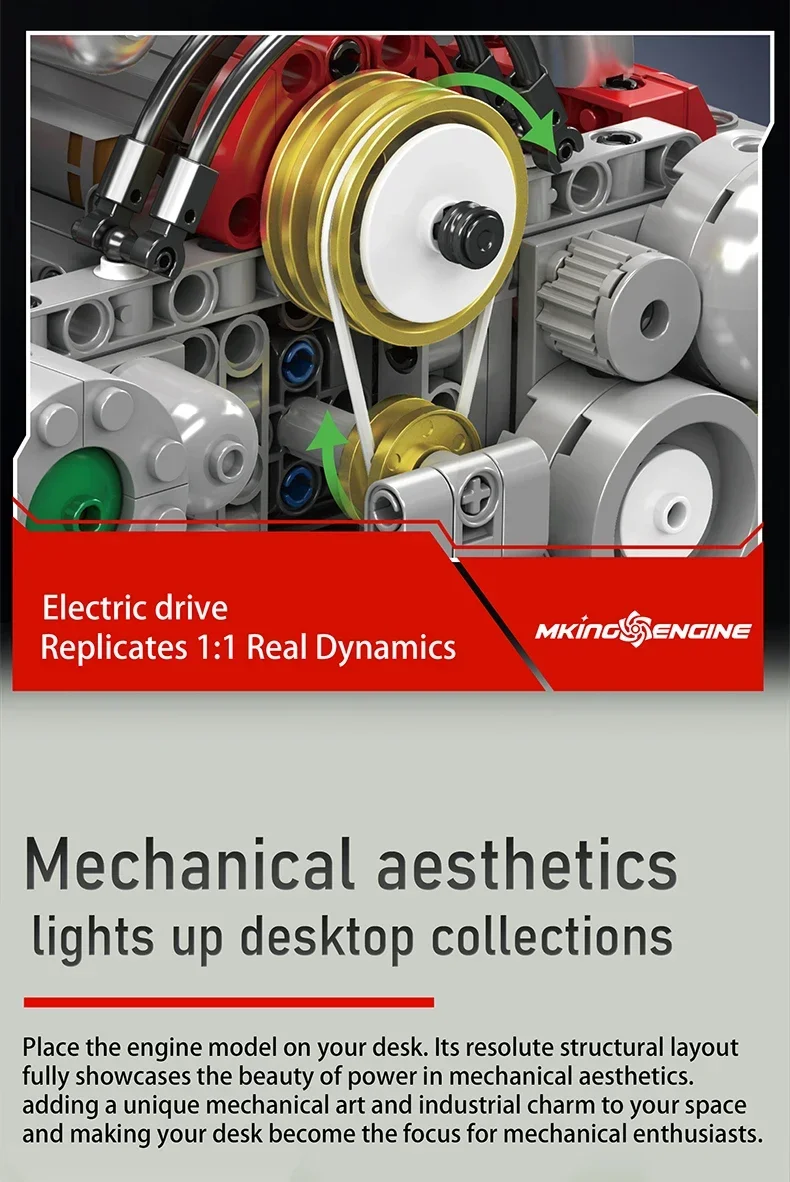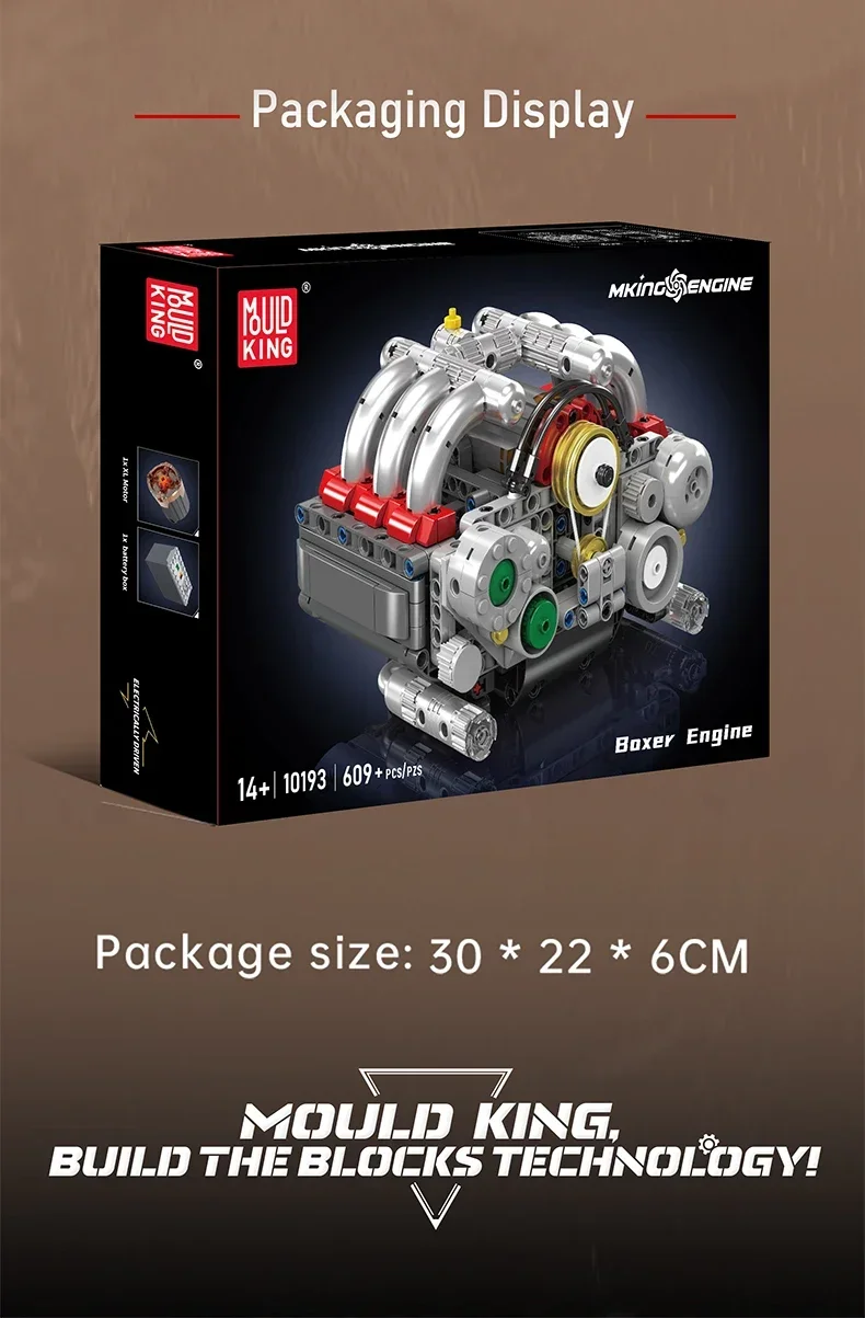 Mold King 10193 Ladrillos de motor opuestos horizontalmente Motor Boxer motorizado Bloques de construcción Juguetes de pieza de coche técnico