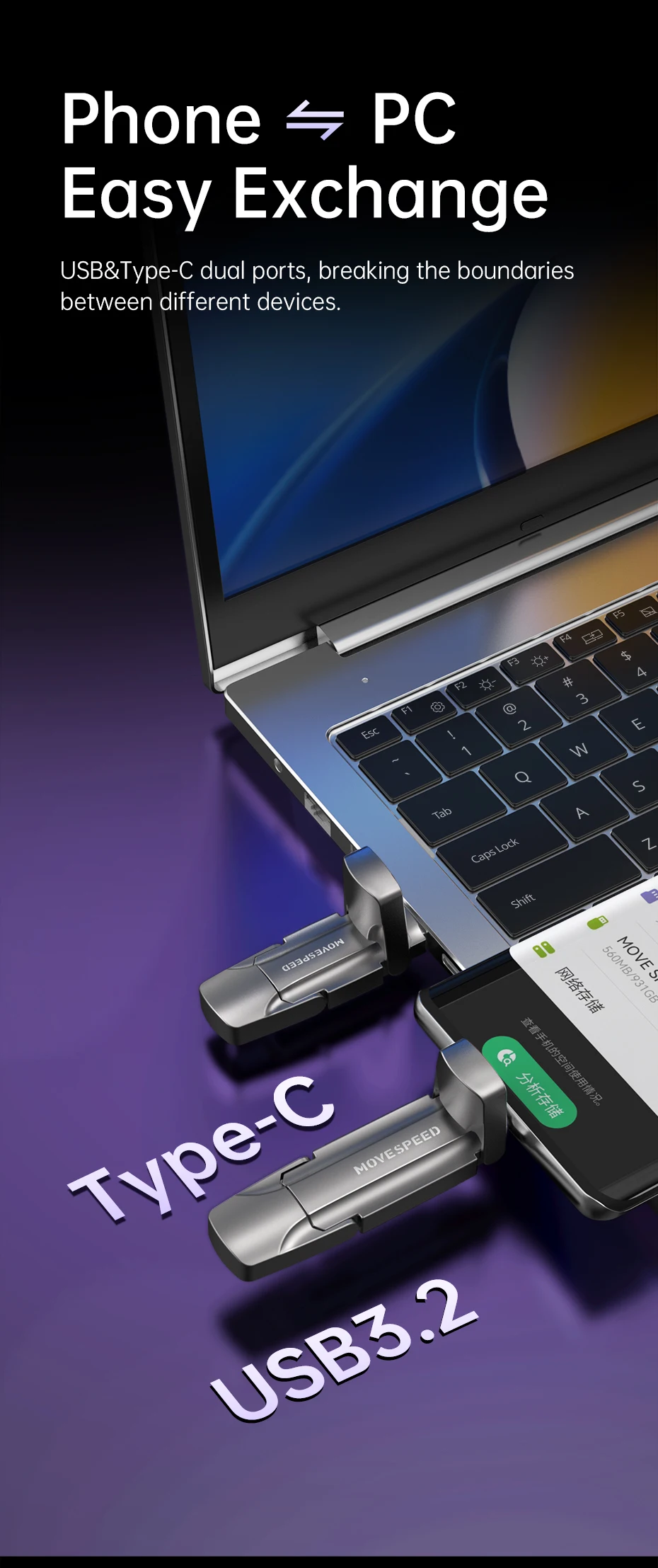 ■ Diseño 2 en 1 USB 3.2 + Tipo C, ampliamente compatible con teléfonos, tabletas, computadoras portátiles, de escritorio, radios de automóviles, etc...