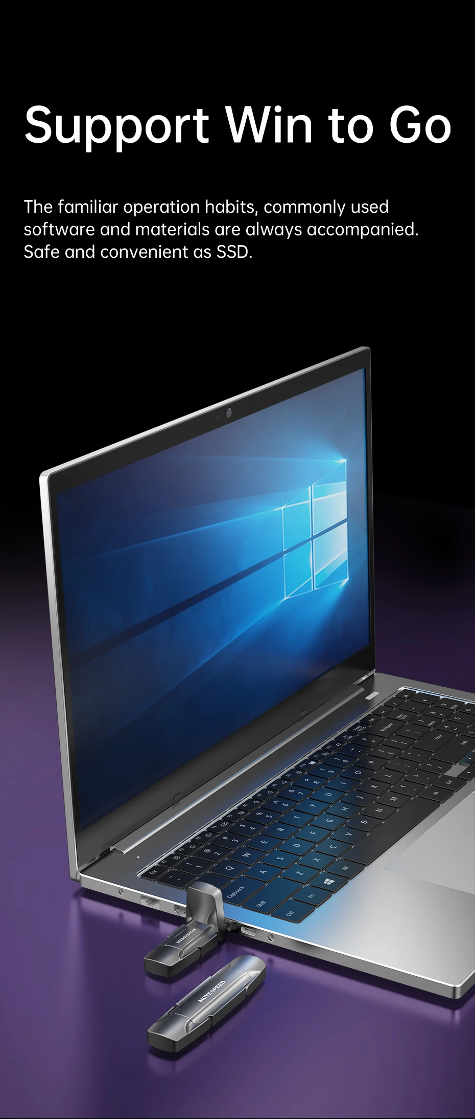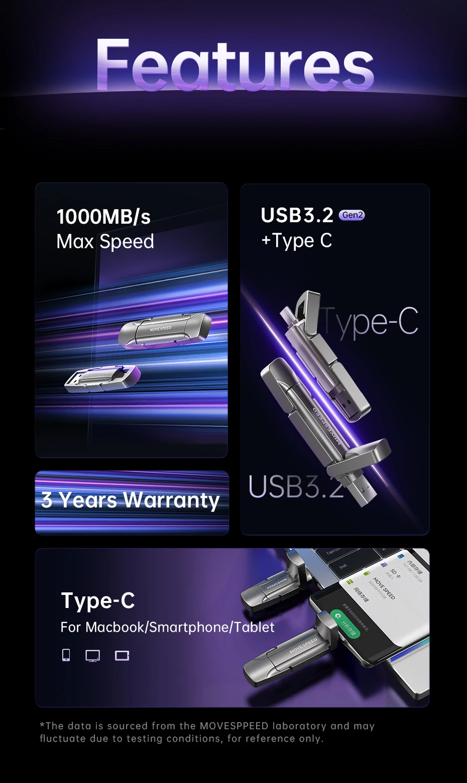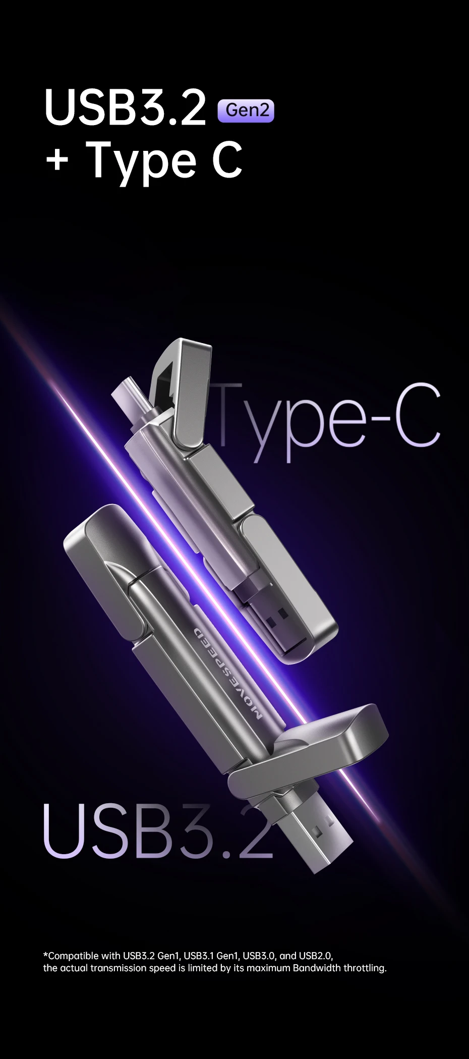 Unidad flash MOVESPEED 1000MB/S USB3.2 + tipo C