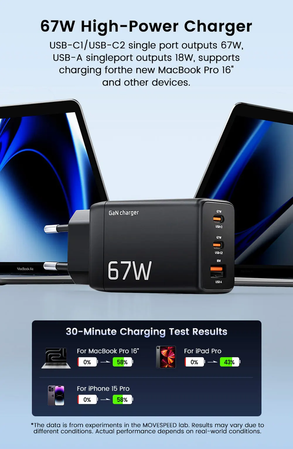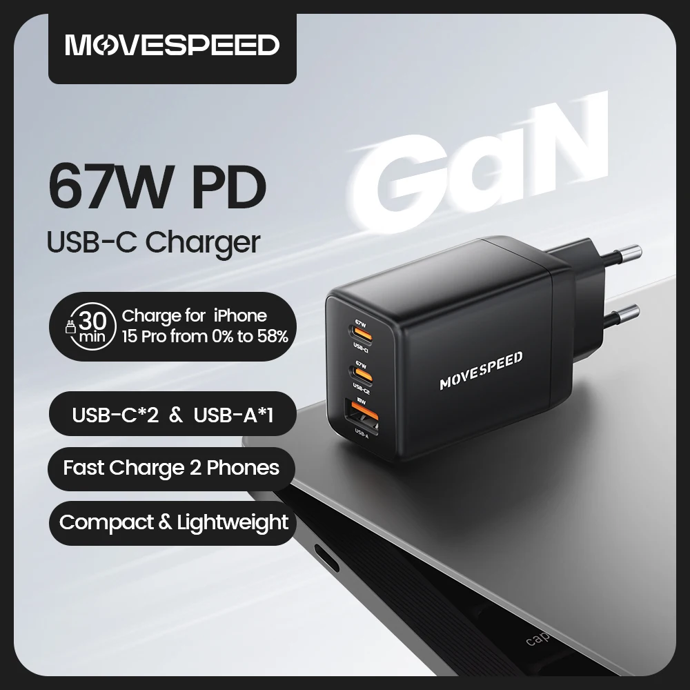 Comprar MOVESPEED 67W USB-C cargador de carga rápida 65W PD tipo C PPS GaN adaptador de cargador para iPhone 16 Pro MacBook Air Samsung S24 Huawei