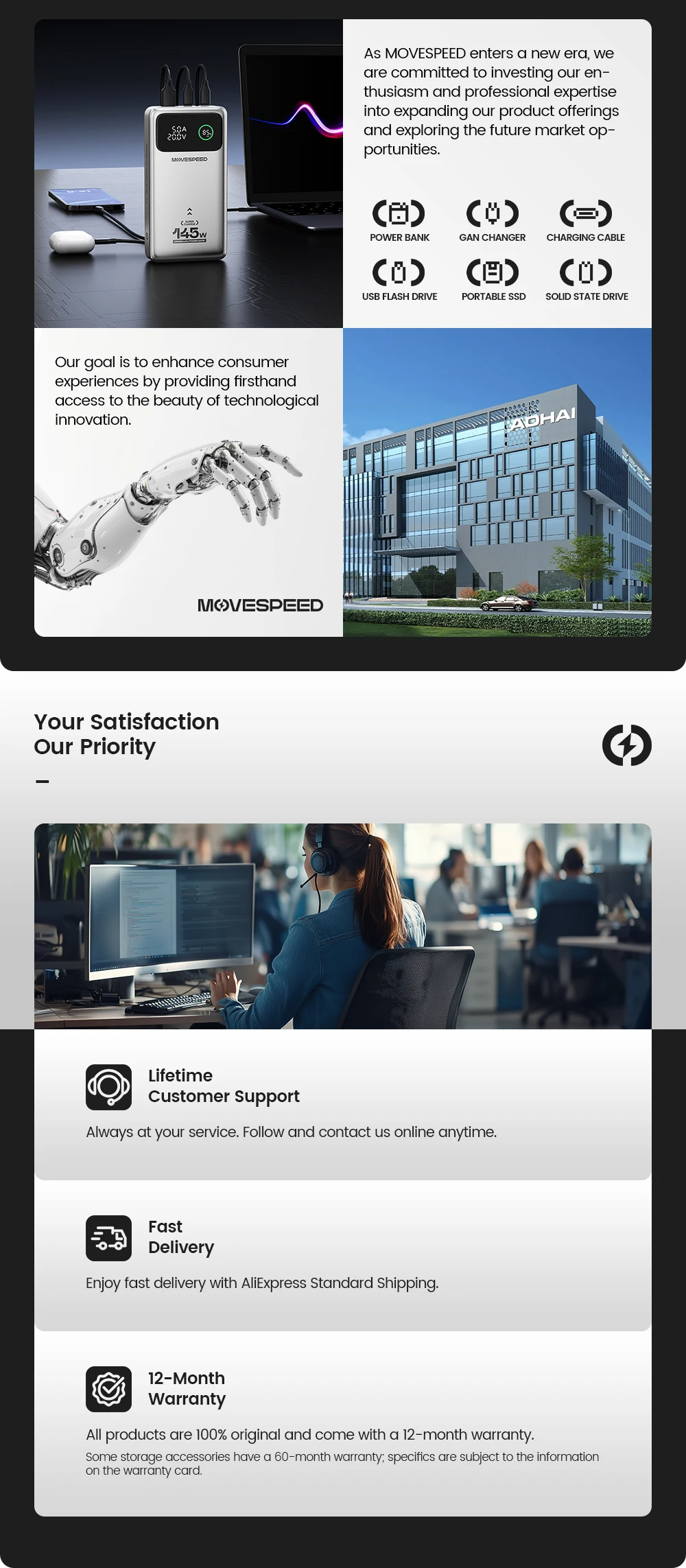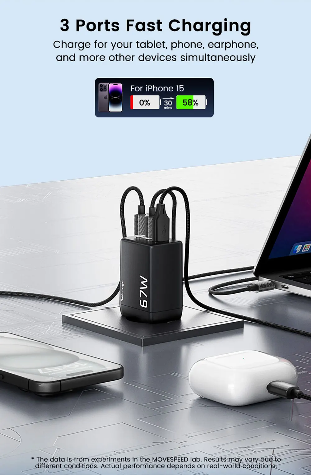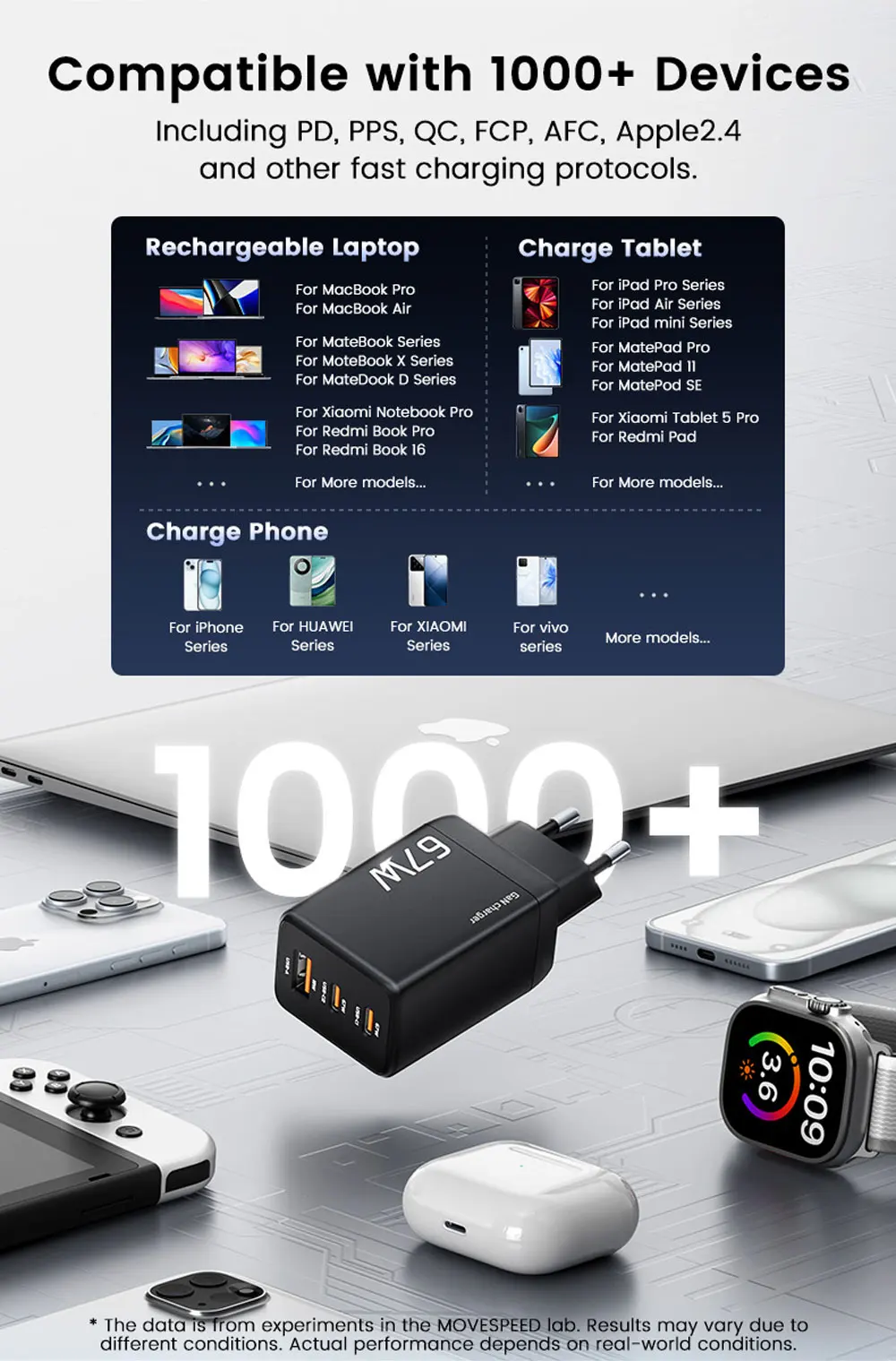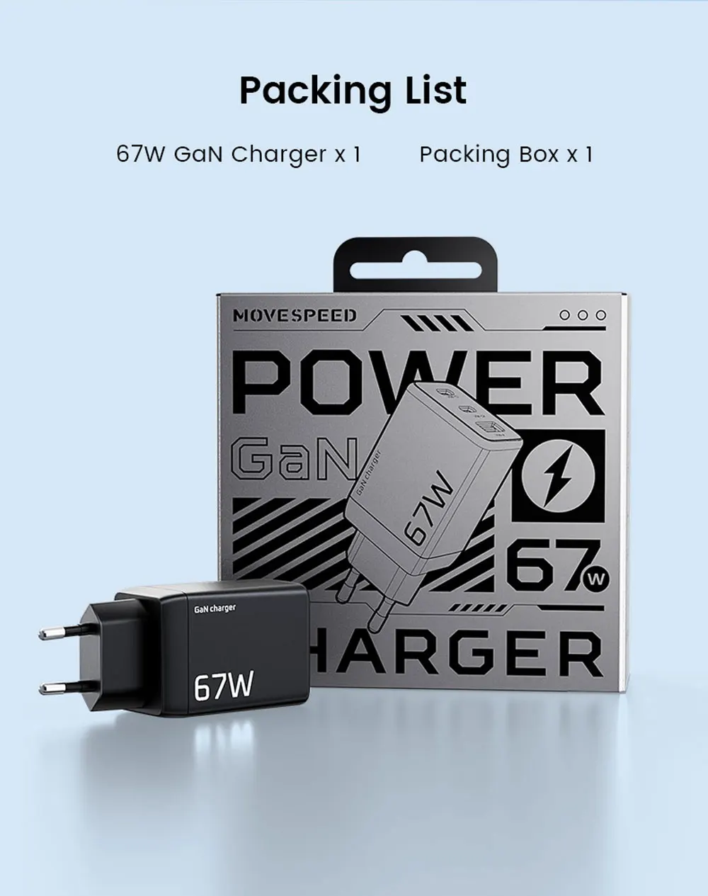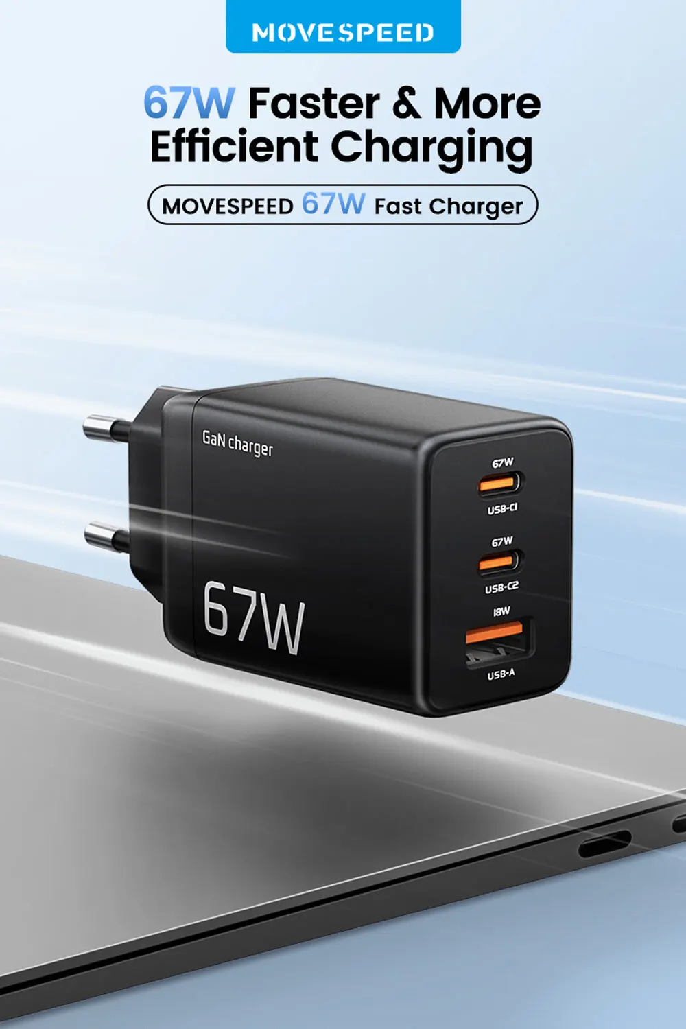 ● The MOVESPEED charger adapts to your power needs, making it the perfect companion for travel, the office, or home.