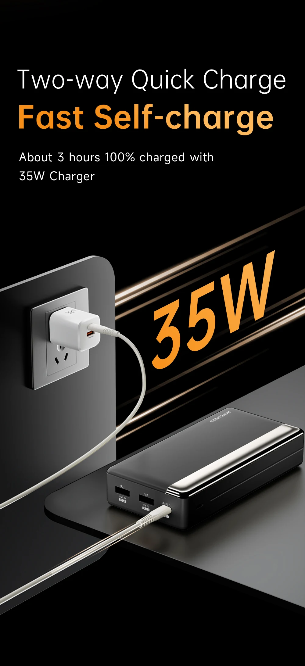● Recarga rápida: se recarga completamente en 2 horas a través de una entrada de 35 W, manteniéndote listo más rápido.