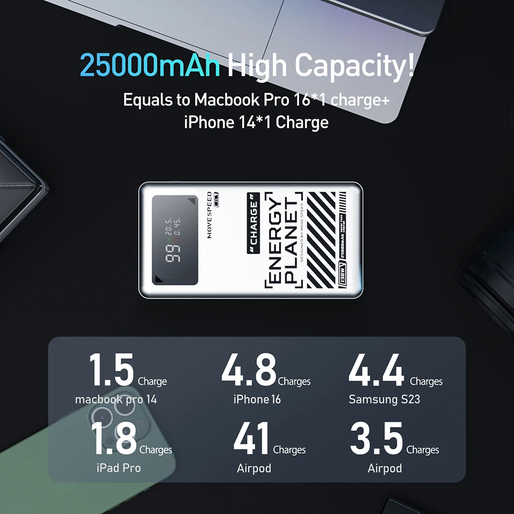 Comprar MOVESPEED M25Pro 140W banco de energía carga rápida 145W Max 25000mAh batería externa PD3.1 Powerbank para iPhone MacBook Lenovo portátil