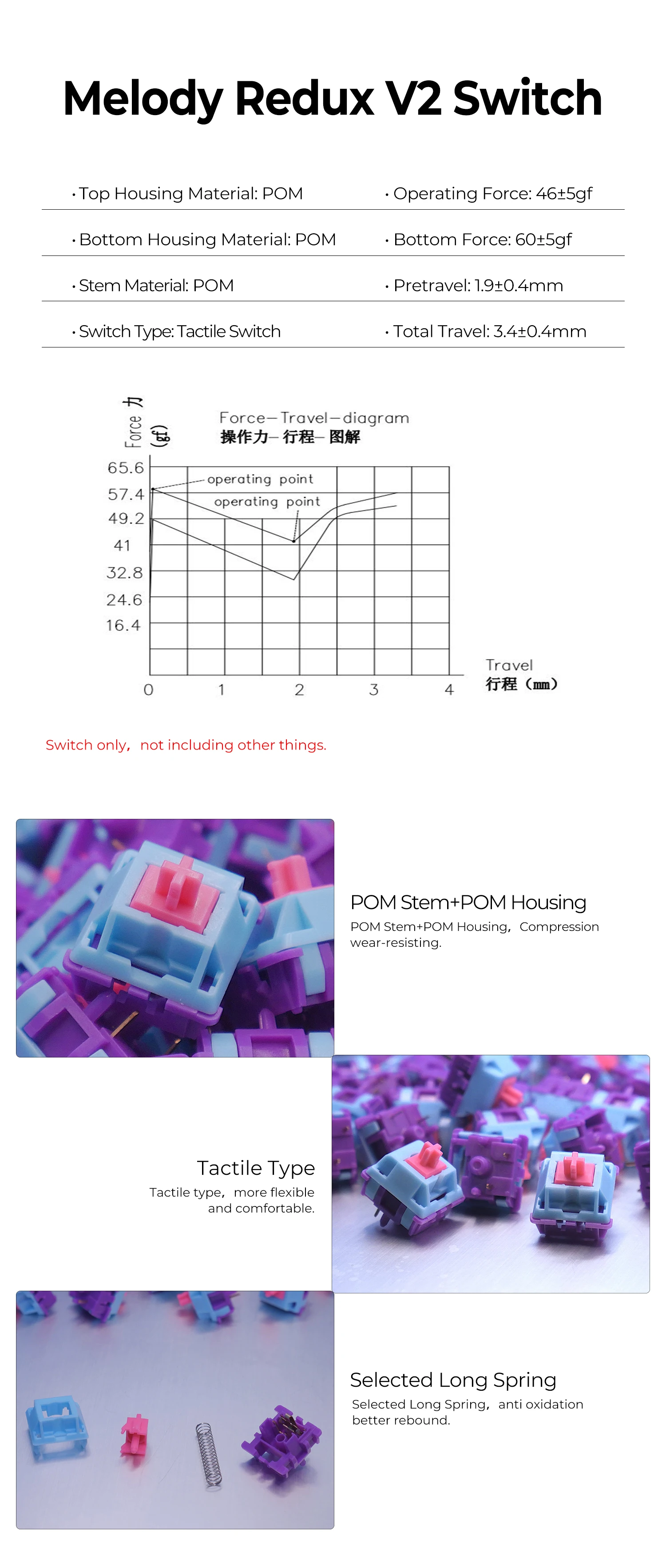 MOYU Melody Redux Switch V2 RGB SMD 5pin 46g 60g para teclado mecánico para juegos POM completo prelubricado de fábrica