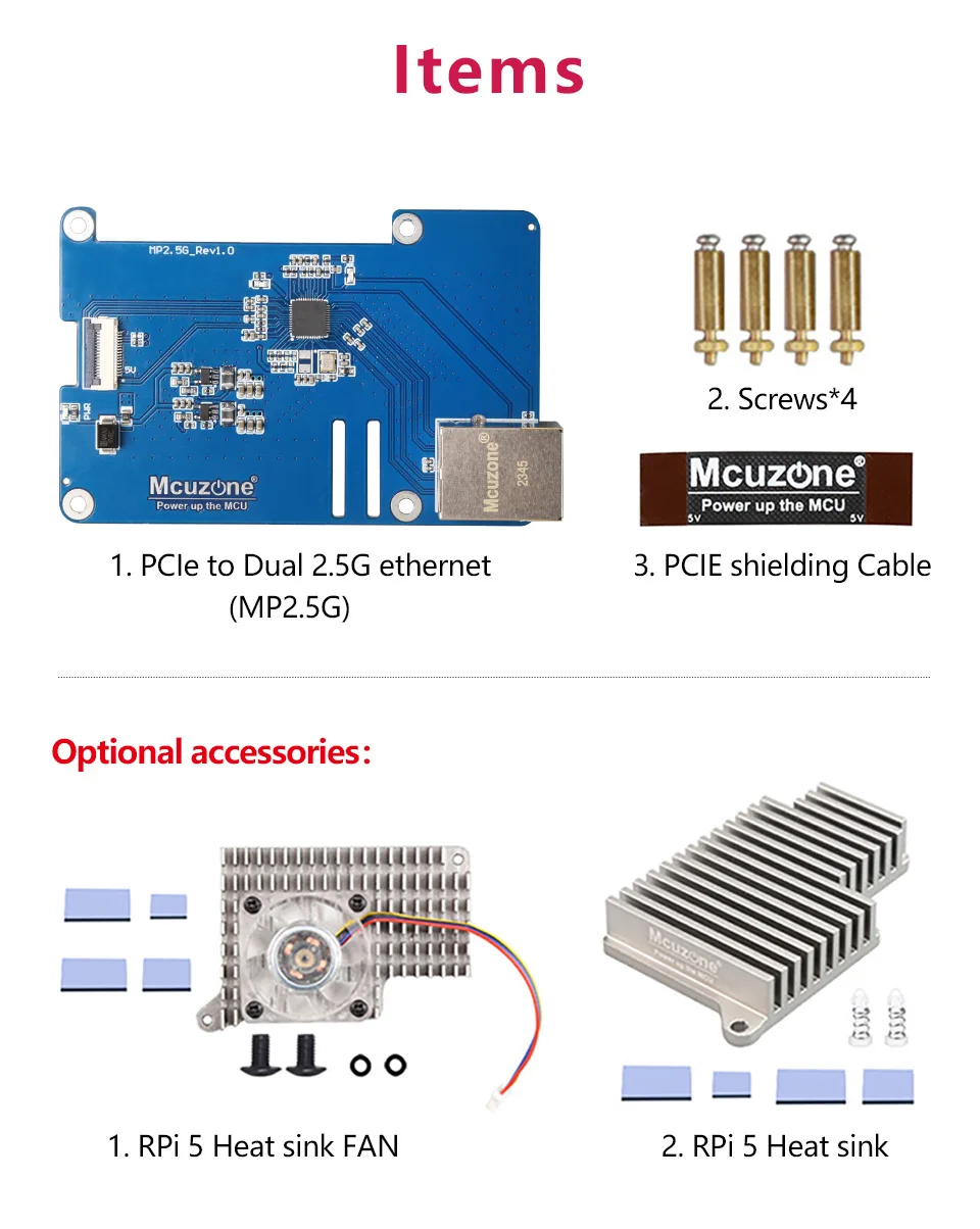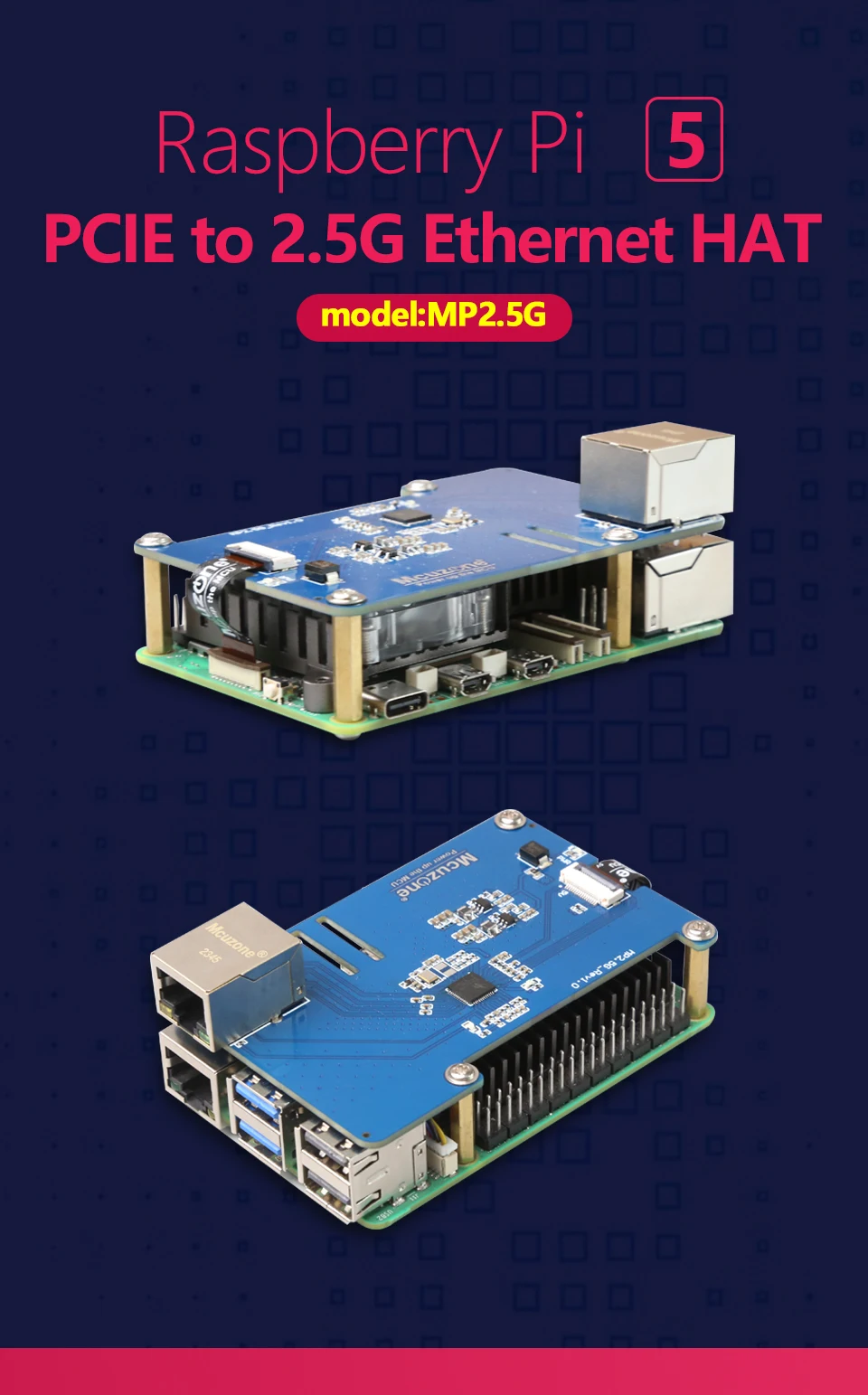 MP2.5G Raspberry Pi 5 PCIE a 2,5G Ethernet HAT,RTL8125,RPi OS sin controladores