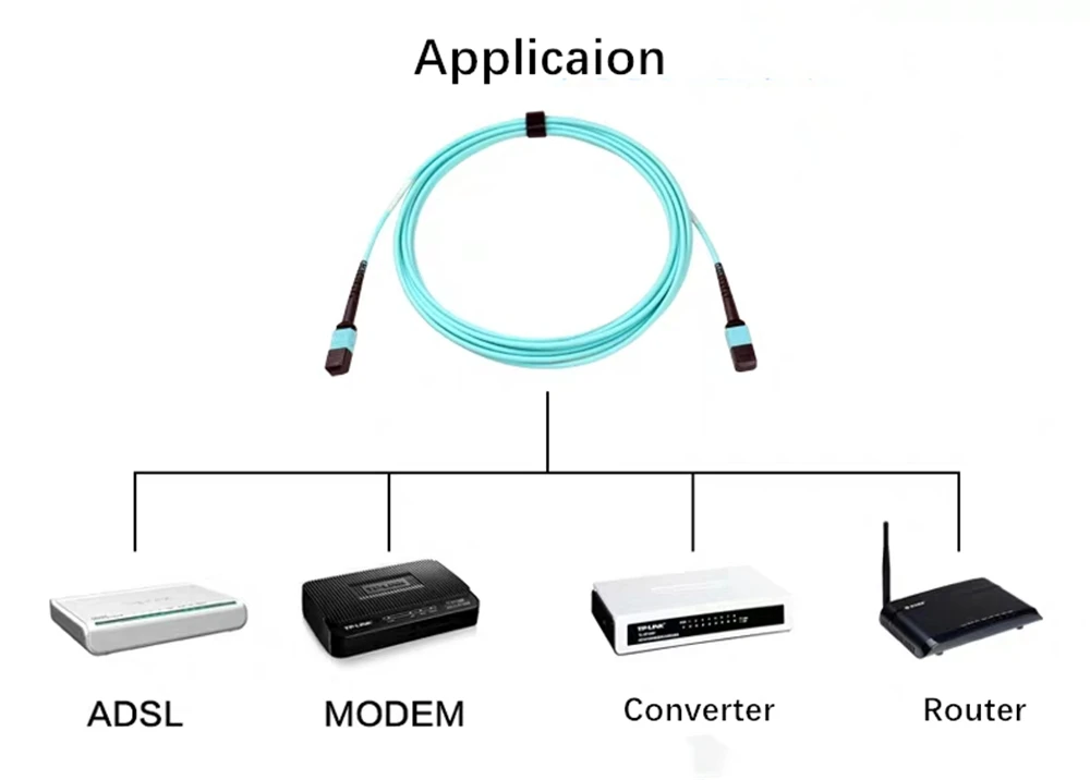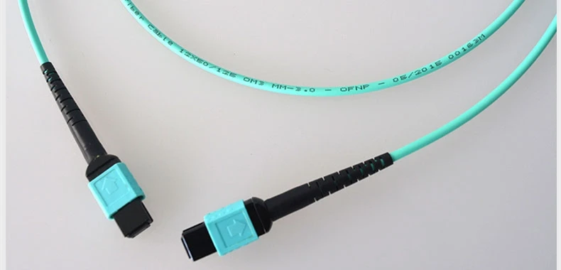 Parche cables de fibra óptica MPO-MPO de 12 núcleos, cable redondo, color agua OM4