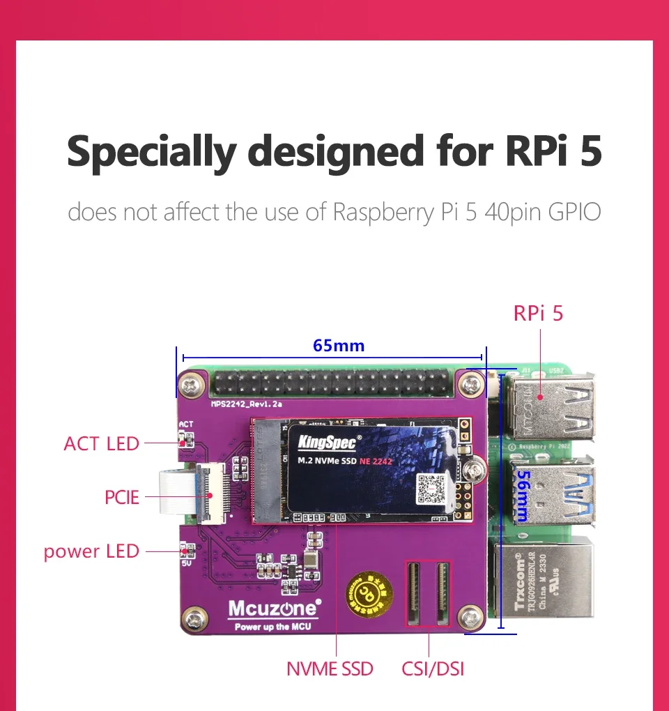MPS2242, PCIE M.2 NVME SSD HAT para Raspberry Pi 5, compatible con 2230 2242 Gen3
