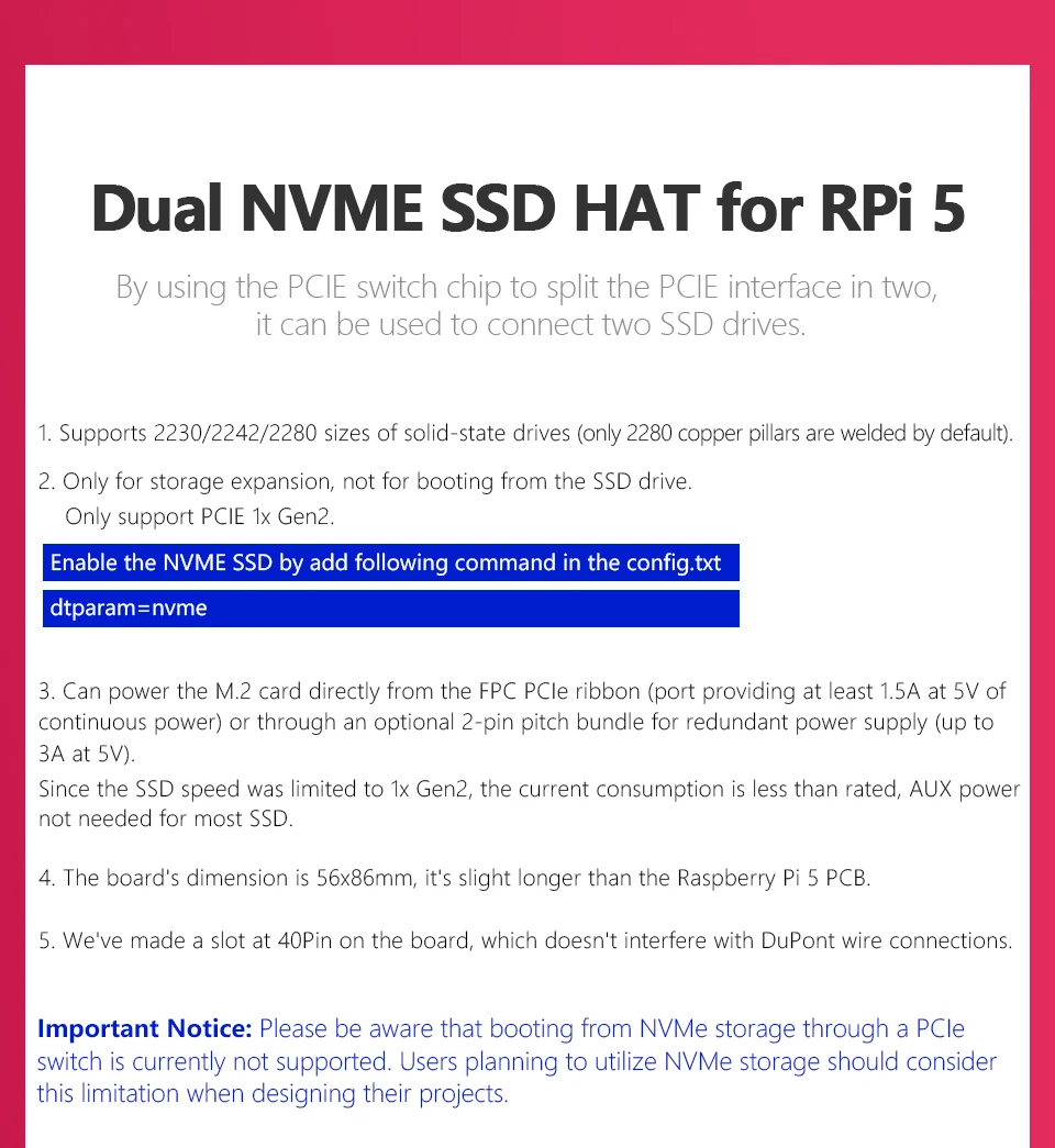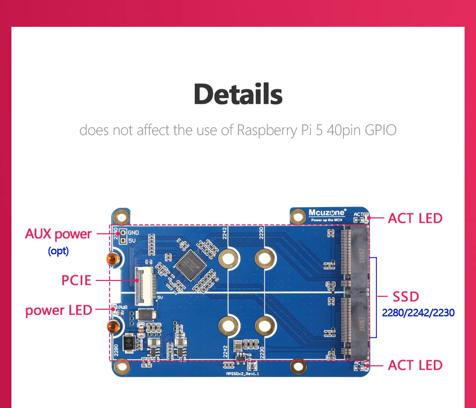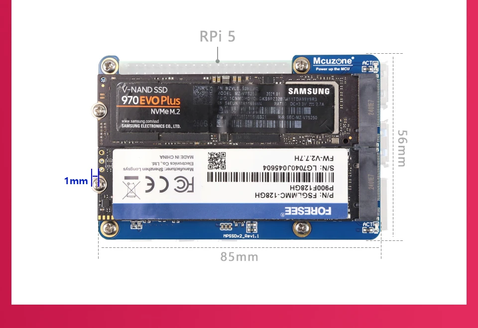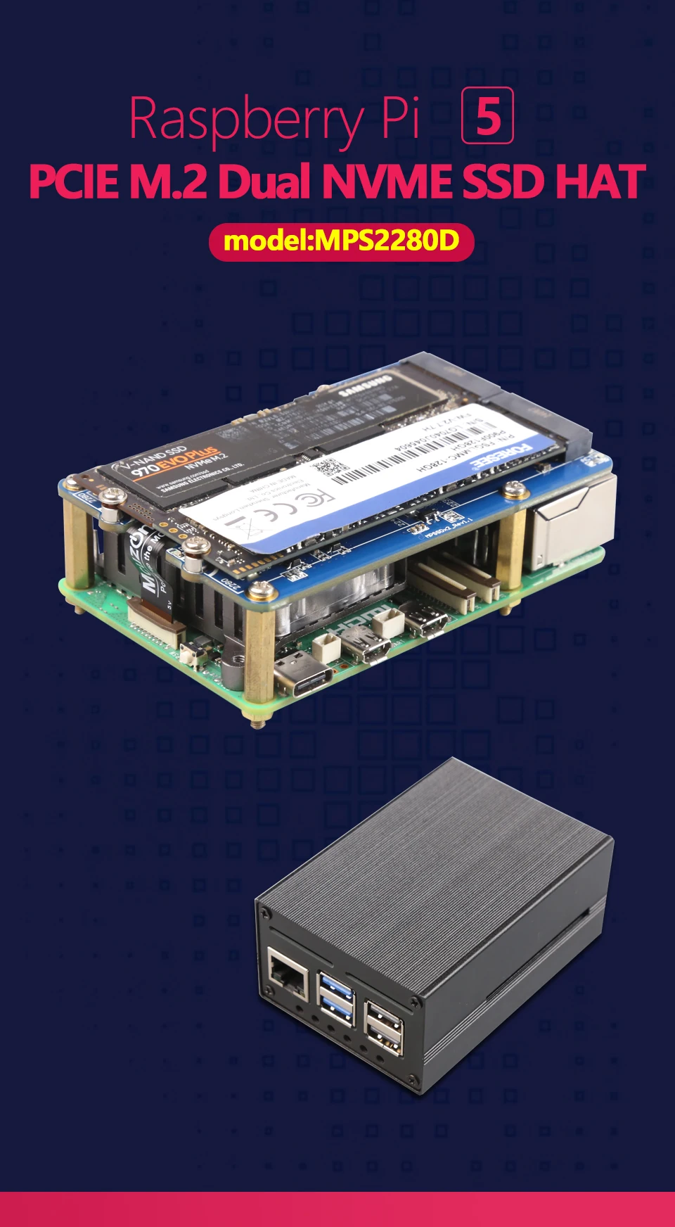 Comprar MPS2280D Raspberry Pi 5 PCIE M.2 Dual NVME SSD HAT compatible con 2280/2242/2230 SSD