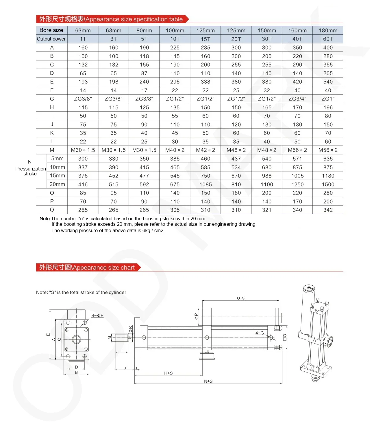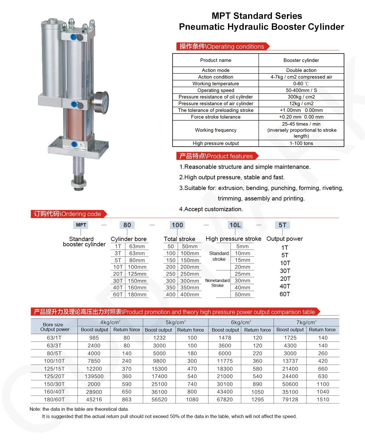 Comprar MPT 1T to10T Tamaño del orificio 63-100 mm Presión del cilindro Doble acción Estándar Neumático Hidráulico Gas-Líquido Presurizado Booster