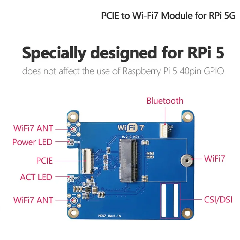 Comprar MPW7AC para Raspberry Pi 5 PCIE a M.2 E-Key Wifi7 módulo con funda BE200 compatible con Google TPU,Wif6e AX210, adaptador AX200 PCB azul