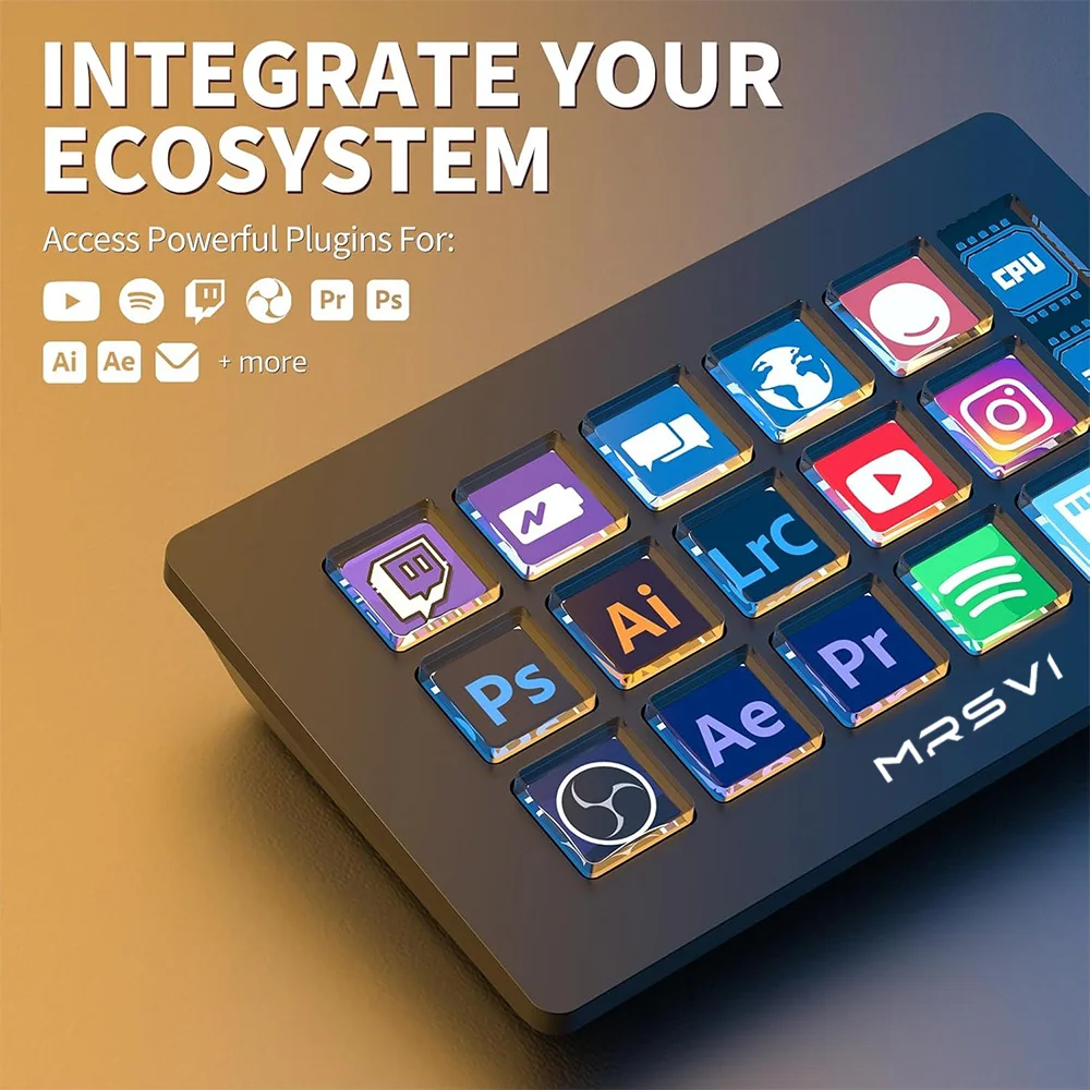 5.Compatibilidad versátil: el controlador de estudio admite una amplia gama de sistemas operativos, incluidos Compatible con Windows y MacOS, lo que garantiza que una amplia base de usuarios pueda aprovechar sus funciones.Ya sea que esté cambiando escenas, ajustando niveles de audio o activando macros complejos, los botones sensibles del Mini Visual Keyboard garantizan que pueda ejecutar comandos de forma rápida y precisa.