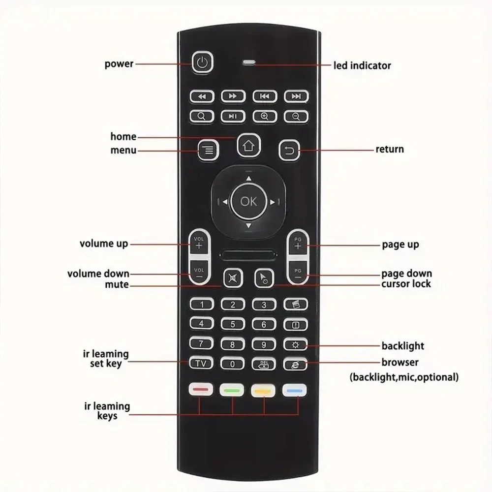 • Air Mouse retroiluminado: La función air mouse retroiluminado permite un uso fácil y cómodo en condiciones de poca luz.
