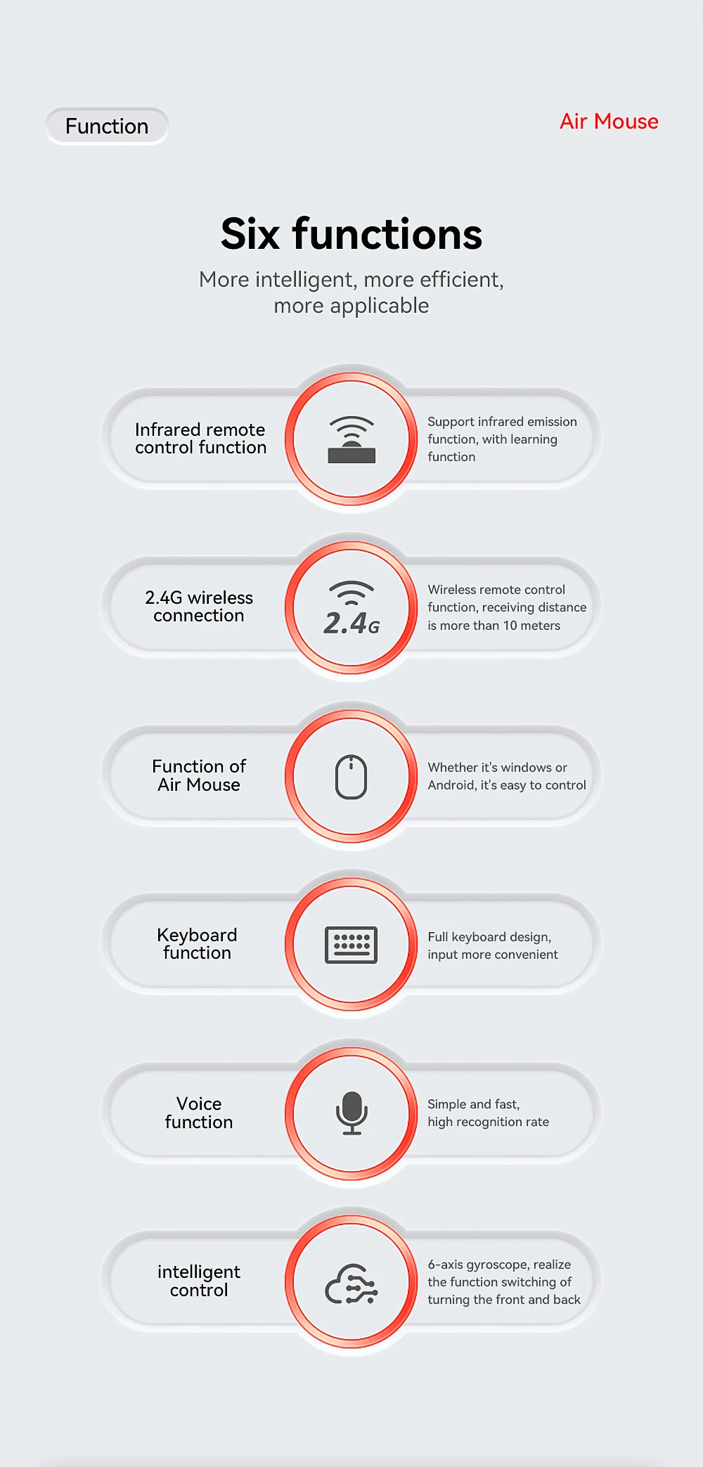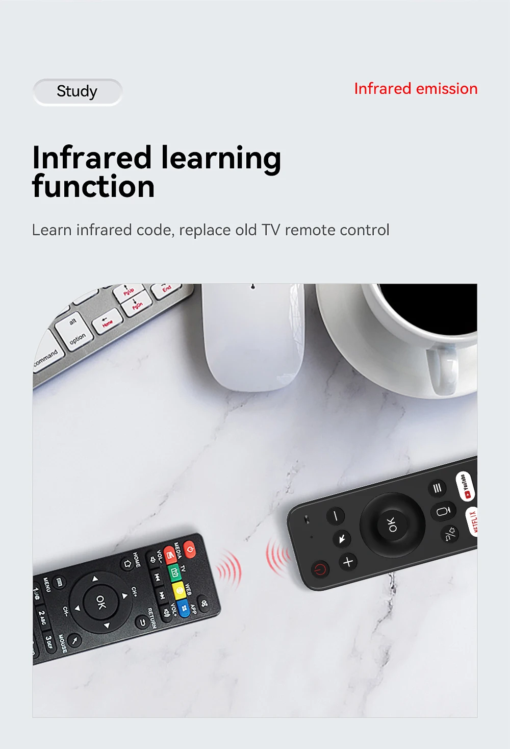 Comprar MRSVI V9 Air Mouse Control remoto 2,4G IR aprendizaje giroscopio de 6 ejes Google Voice Motion Sense para Smart TV, Android TV Box, PC