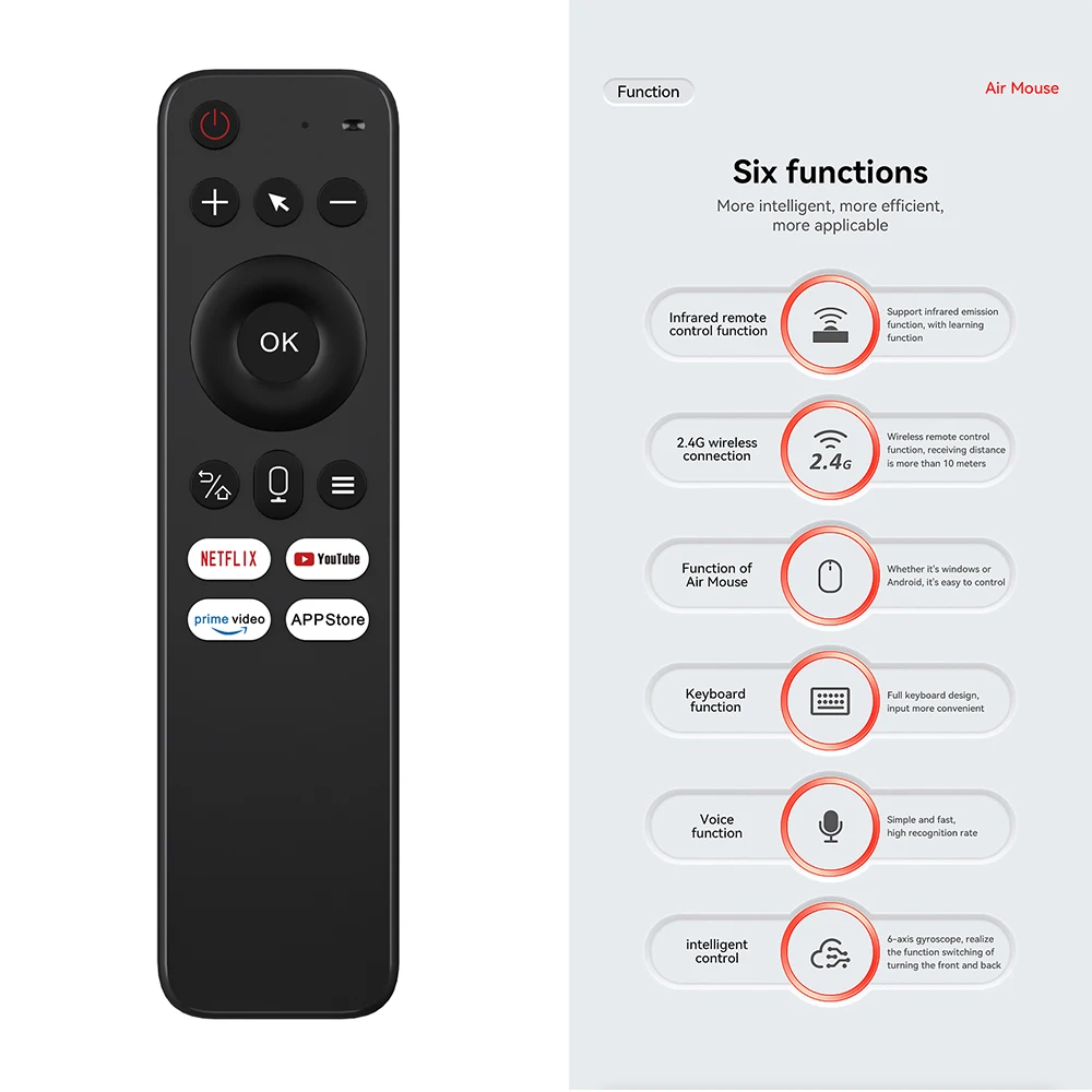 Comprar MRSVI V9 Air Mouse Control remoto 2,4G IR aprendizaje giroscopio de 6 ejes Google Voice Motion Sense para Smart TV, Android TV Box, PC
