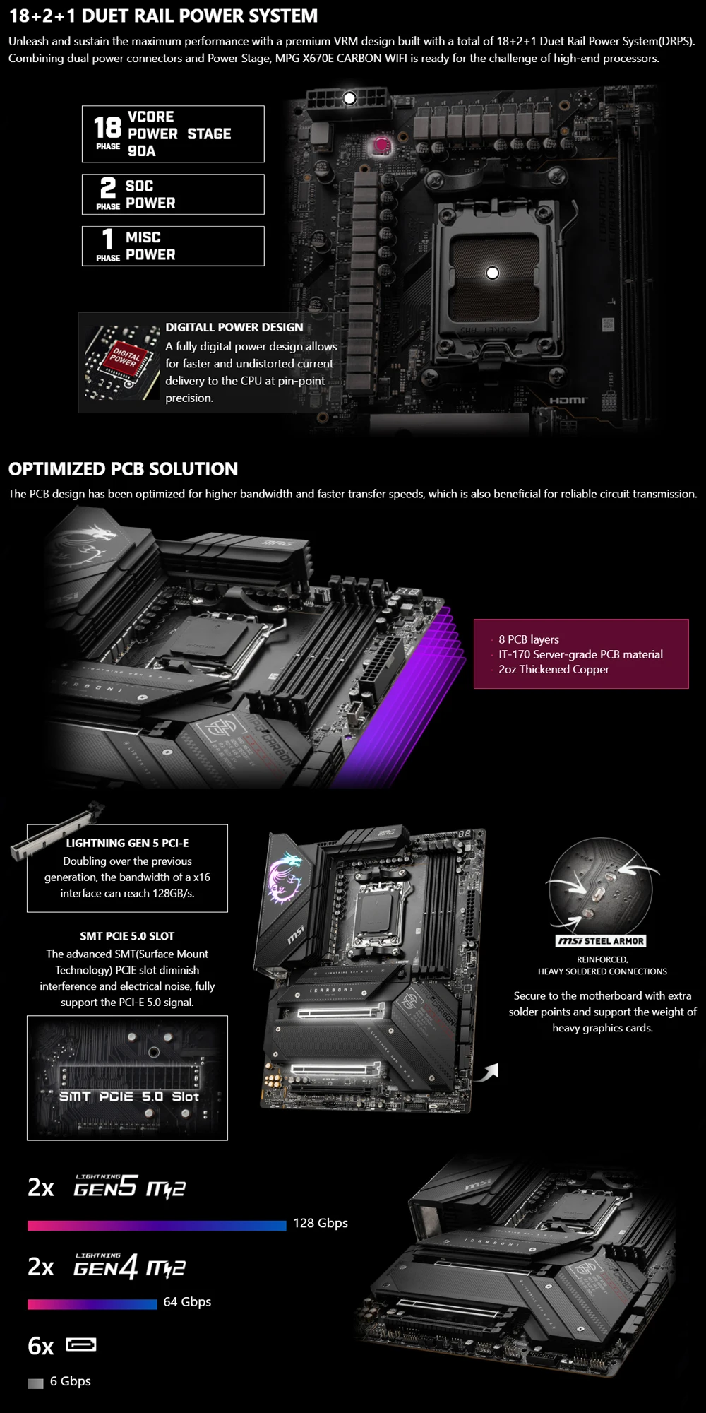 Comprar MSI MPG X670E CARBON WIFI DDR5 Socket AM5 GAMING ATX placa base compatible con AMD Ryzen 7000 Series procesadores AMD X670 placa base, nuevo