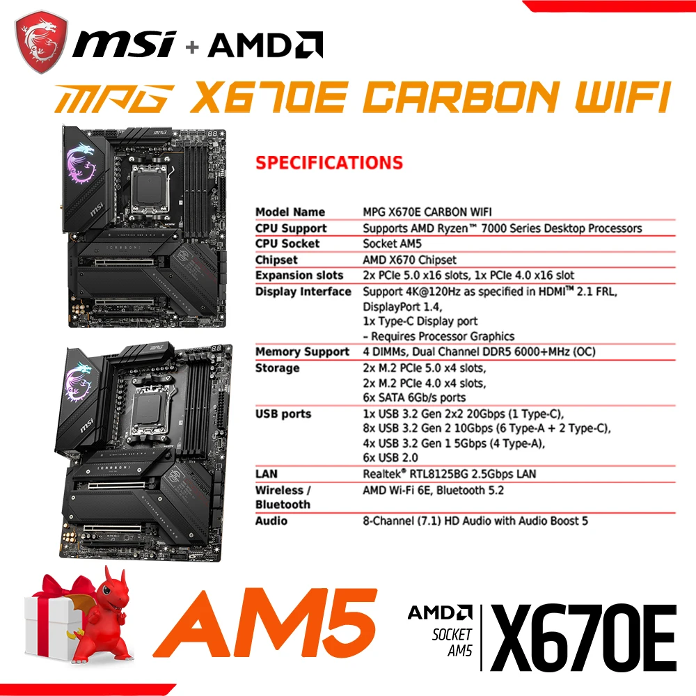 Comprar MSI MPG X670E CARBON WIFI DDR5 Socket AM5 GAMING ATX placa base compatible con AMD Ryzen 7000 Series procesadores AMD X670 placa base, nuevo