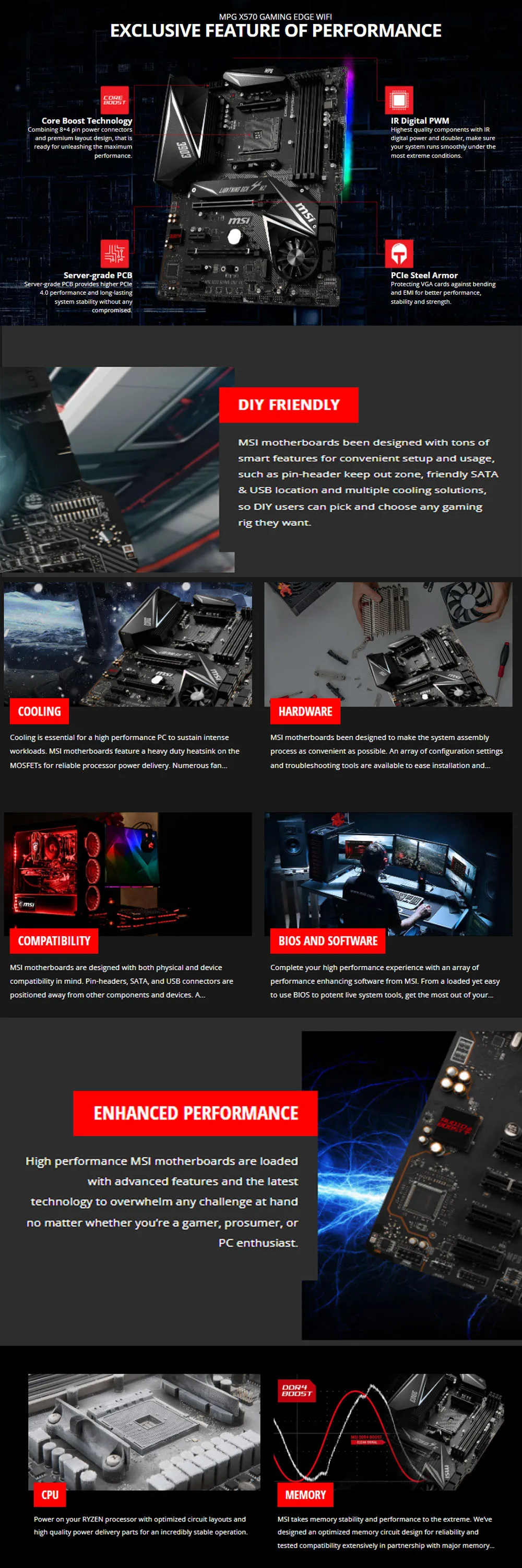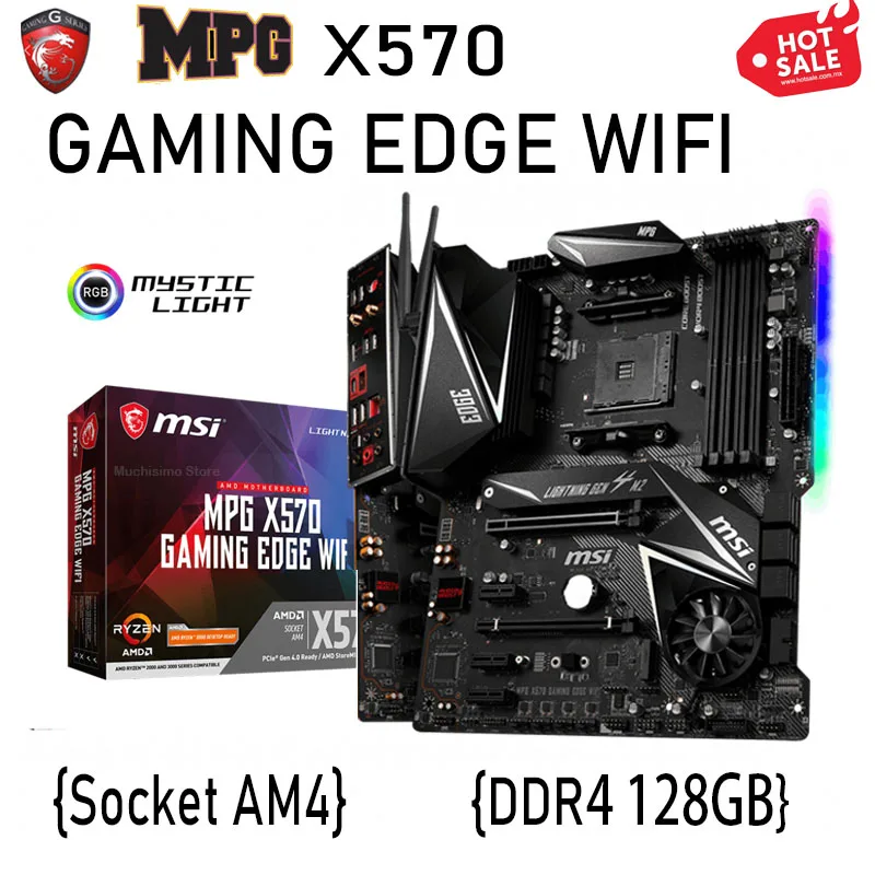 Comprar MSI Socket-placa base AM4 X570 GAMING EDGE, WIFI, DDR4, 128GB, AMD Ryzen X570, AM4, compatible con Bluetooth 5,0, PCI-E 4,0, ATX, nuevo