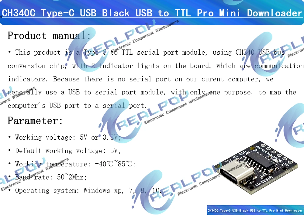 Pedí 2 de ellos. Funcionan bien para tener un monitor serie en microcontroladores PIC. Los probé a 9600 baudios y 115200 baudios. La única desventaja es que no se pueden usar con un cable tipo C a tipo C; solo funcionan con cables tipo A a tipo C.