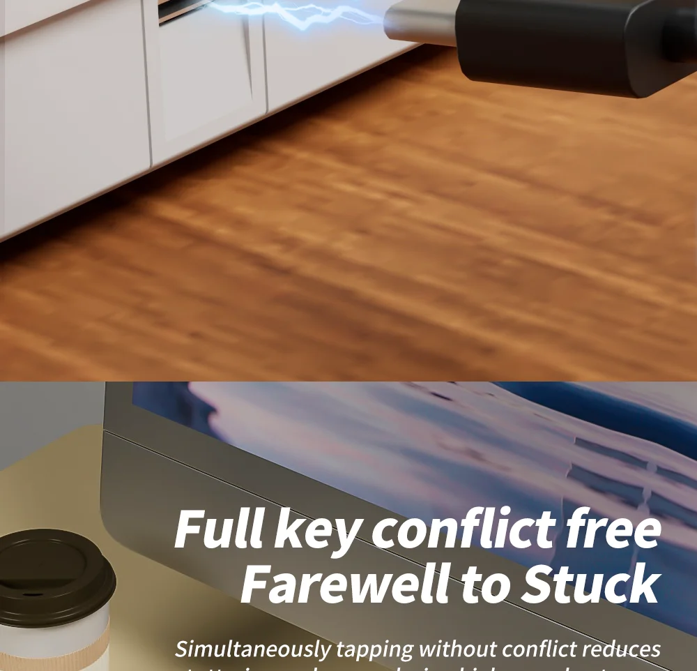 Al jugar a juegos intensos, los pies antideslizantes sujetarán firmemente el teclado en su lugar. Encuentre una posición cómoda.