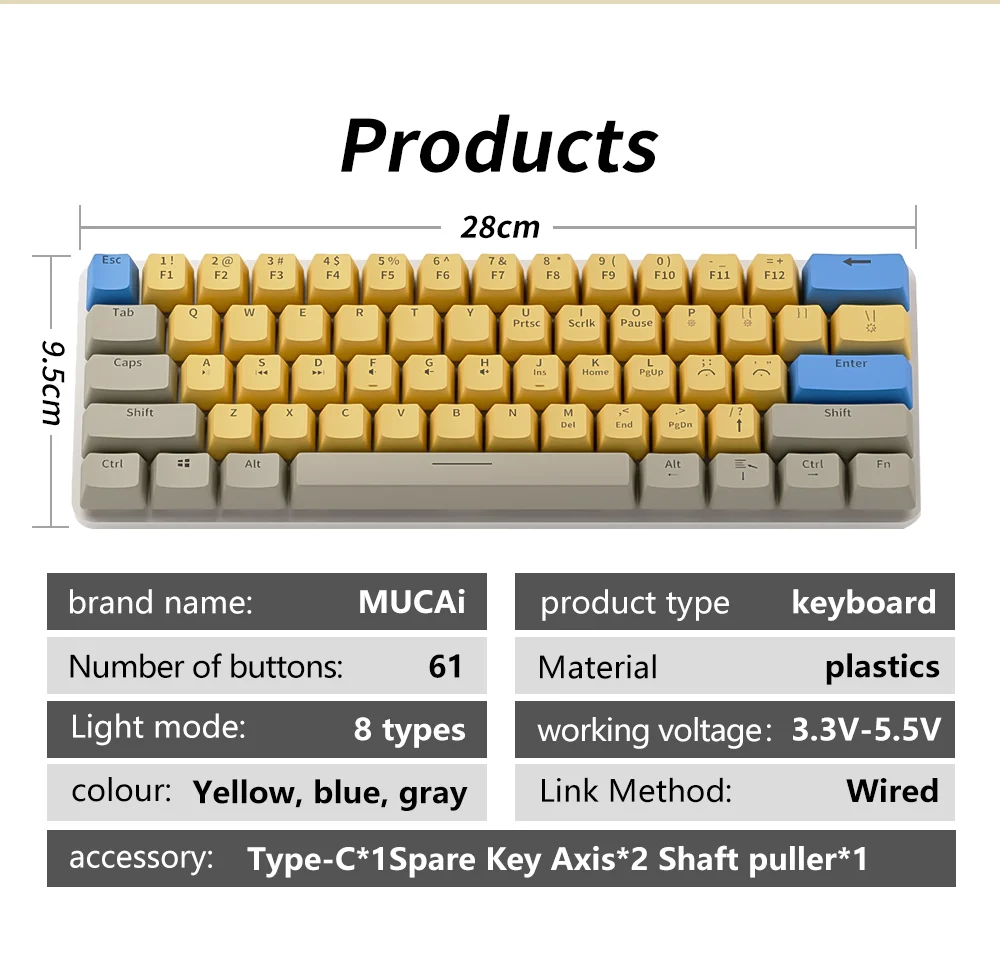 Comprar MUCAI-Mini teclado mecánico MKA610 RGB, USB, interruptor rojo, 61 teclas, con cable, para ordenador portátil