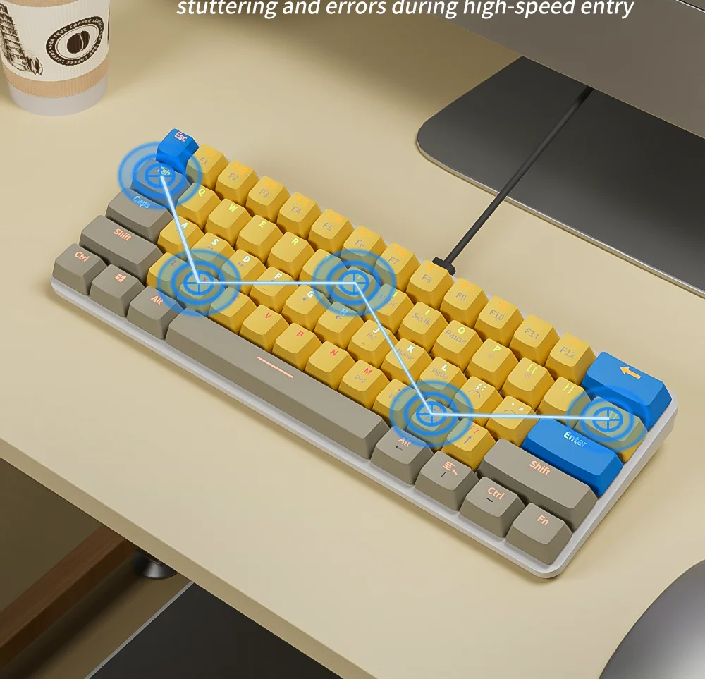 El nuevo teclado con cable MKA610 delgado y fresco de diseño 60% tiene un estilo refrescante y sin economía de transacciones escritas a mano. 61 teclas compactas con teclas seleccionadas, adecuadas solo para jugadores de FPS, trabajo eficiente.