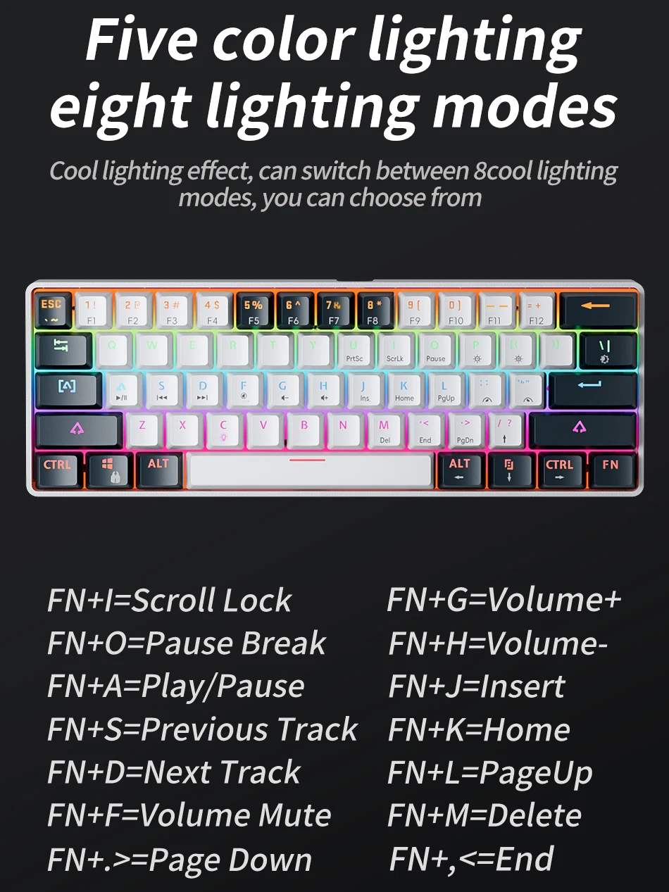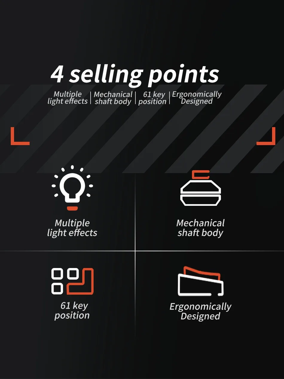 Comprar MUCAI MK61 Teclado mecánico para juegos retroiluminado RGB interruptor rojo de 61 teclas Cable desmontable interfaz USB intercambiable en caliente