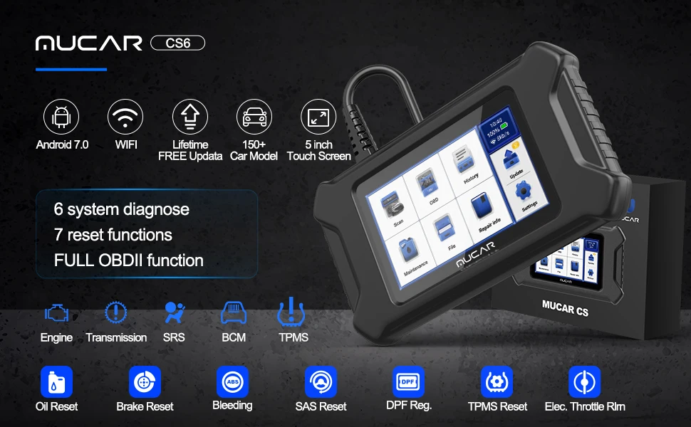 Comprar MUCAR-herramienta de diagnóstico automotriz CS6, escáner ABS, SRS, TCM, ECM, TPMS, 6 códigos del Sistema, lectura de frenos de aceite, 7 reinicio, actualización gratuita de por vida