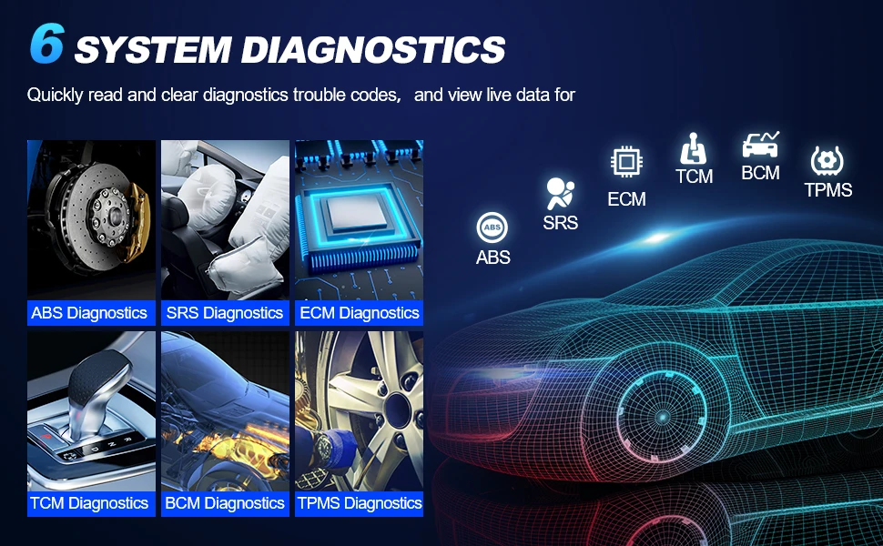 6Sistemas de diagnóstico de por vida libre (ABS,SRS,ECM,TCM,BCM,TPMS)
