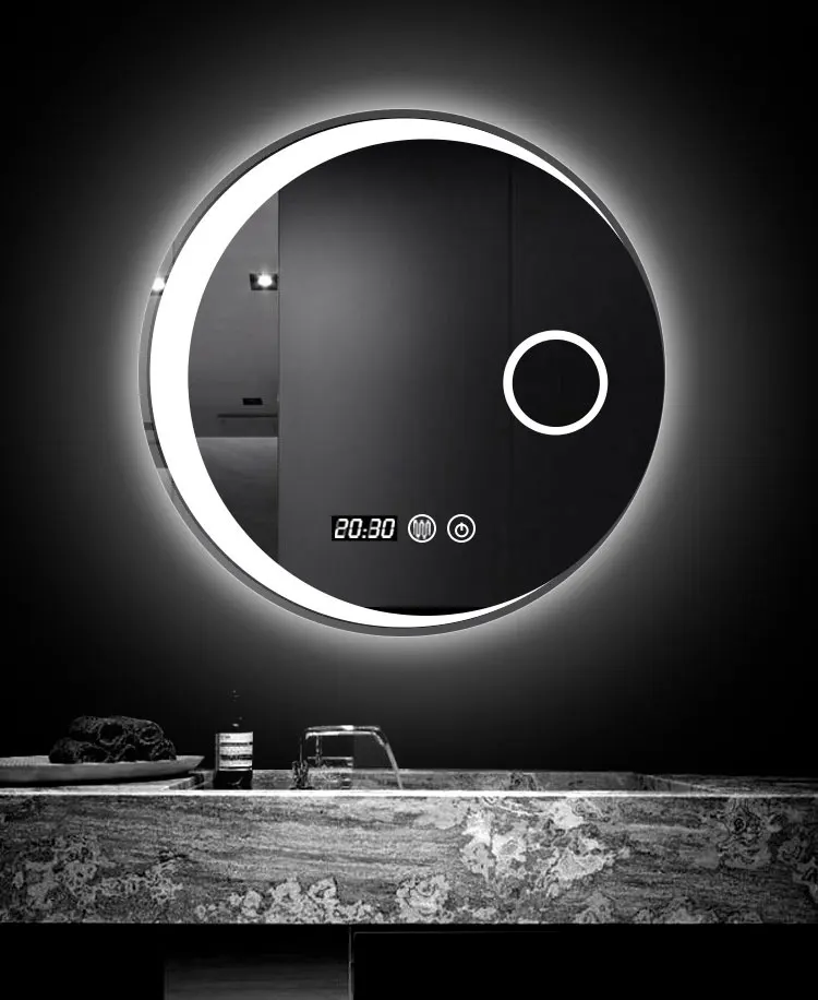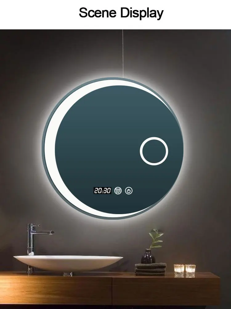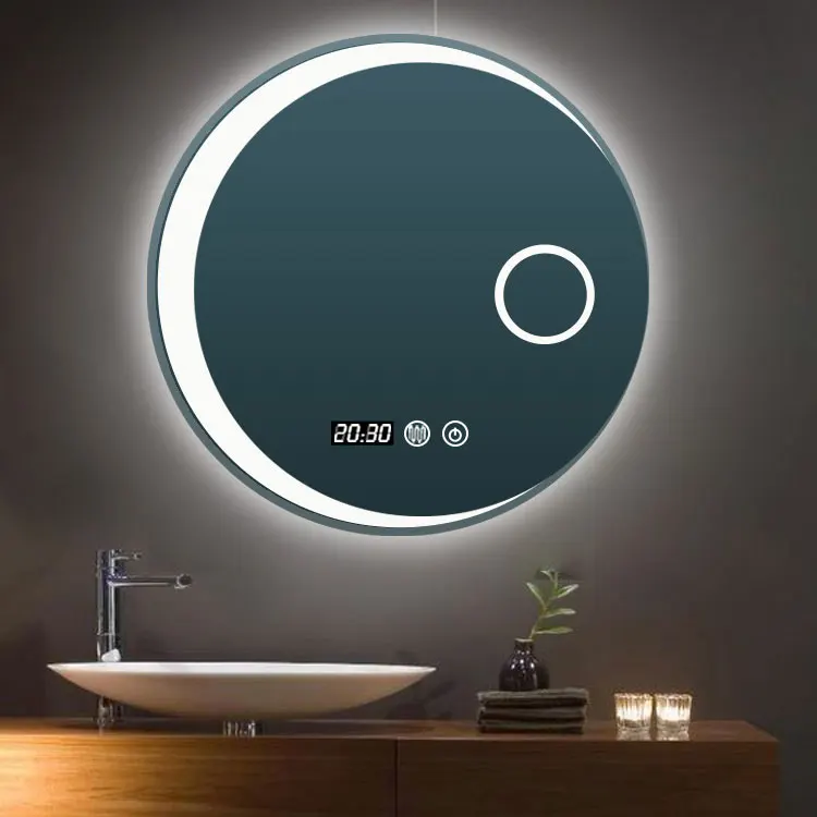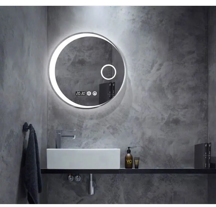 Comprar Mueble de baño con espejo plateado de lujo moderno con luces LED, espejo redondo chino con lupa inteligente para uso doméstico