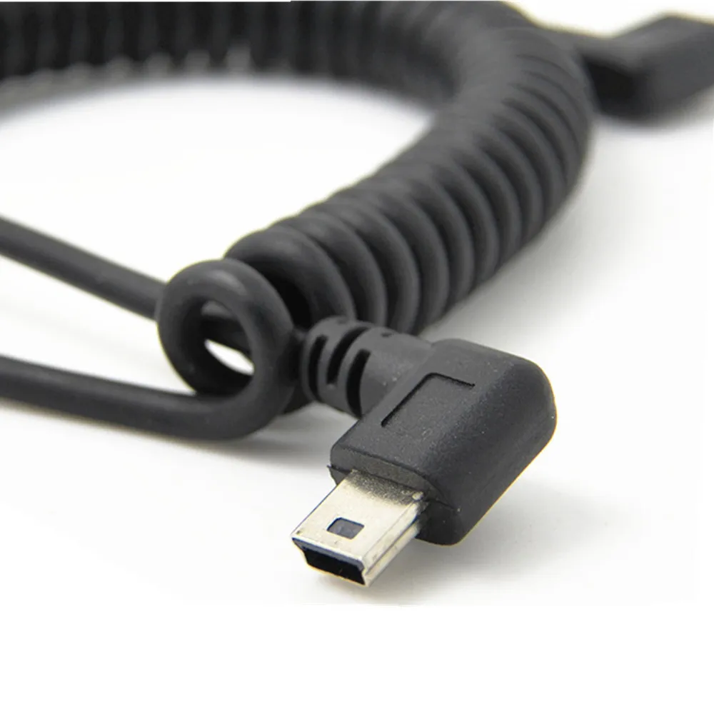 Cable de carga Universal USB2.0 macho a Mini USB2.0 macho con resorte en espiral, giratorio de 90 grados a derecha, Cable de carga