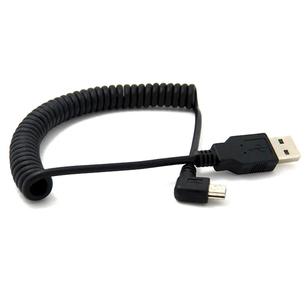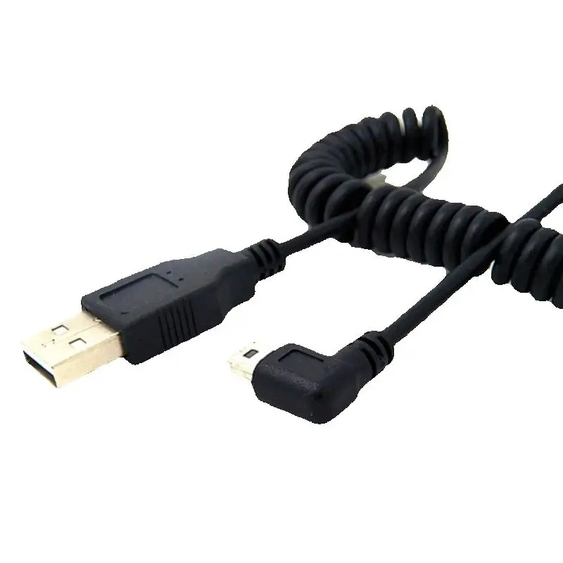 Cable de carga Universal USB2.0 macho a Mini USB2.0 macho con resorte en espiral, giratorio de 90 grados a derecha, Cable de carga
