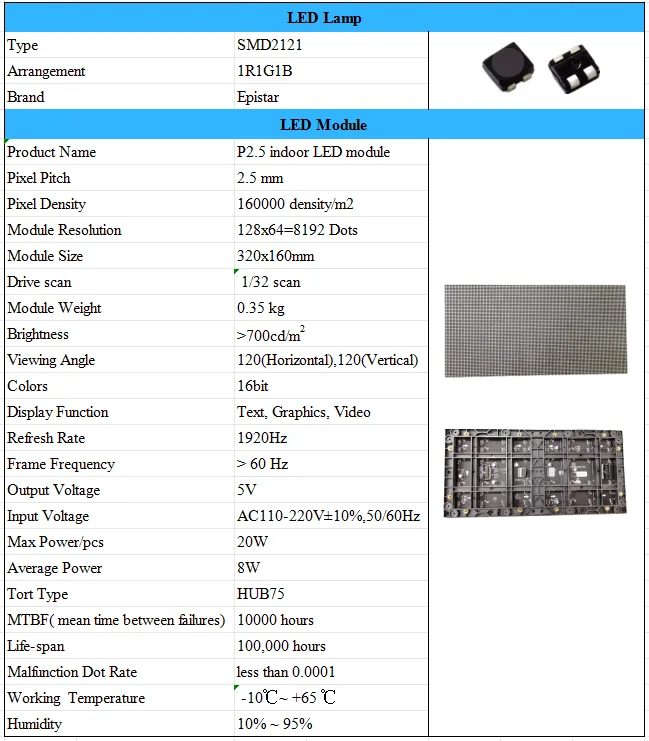 Comprar Muen-Módulo de pantalla LED P2.5 para interior, dispositivo de escaneo de 1/32, 320x160mm, 128x64 puntos, para pared, piexl pequeño