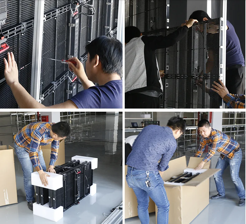 Las características de alto brillo y alta definición de la pantalla LED transparente garantizan imágenes de gran calidad, por lo que es un ajuste perfecto para escenarios, bancos, paredes de vidrio, promociones, estaciones, estadios y otros lugares interiores.