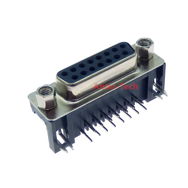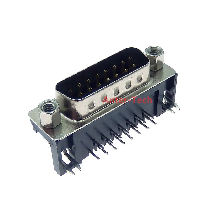 Comprar Muestra negra macho/hembra DB15 H DR15 d-sub, ángulo recto, pines de doble fila, montaje PCB, puerto VGA, conector con tuercas de tornillo, 2 uds.