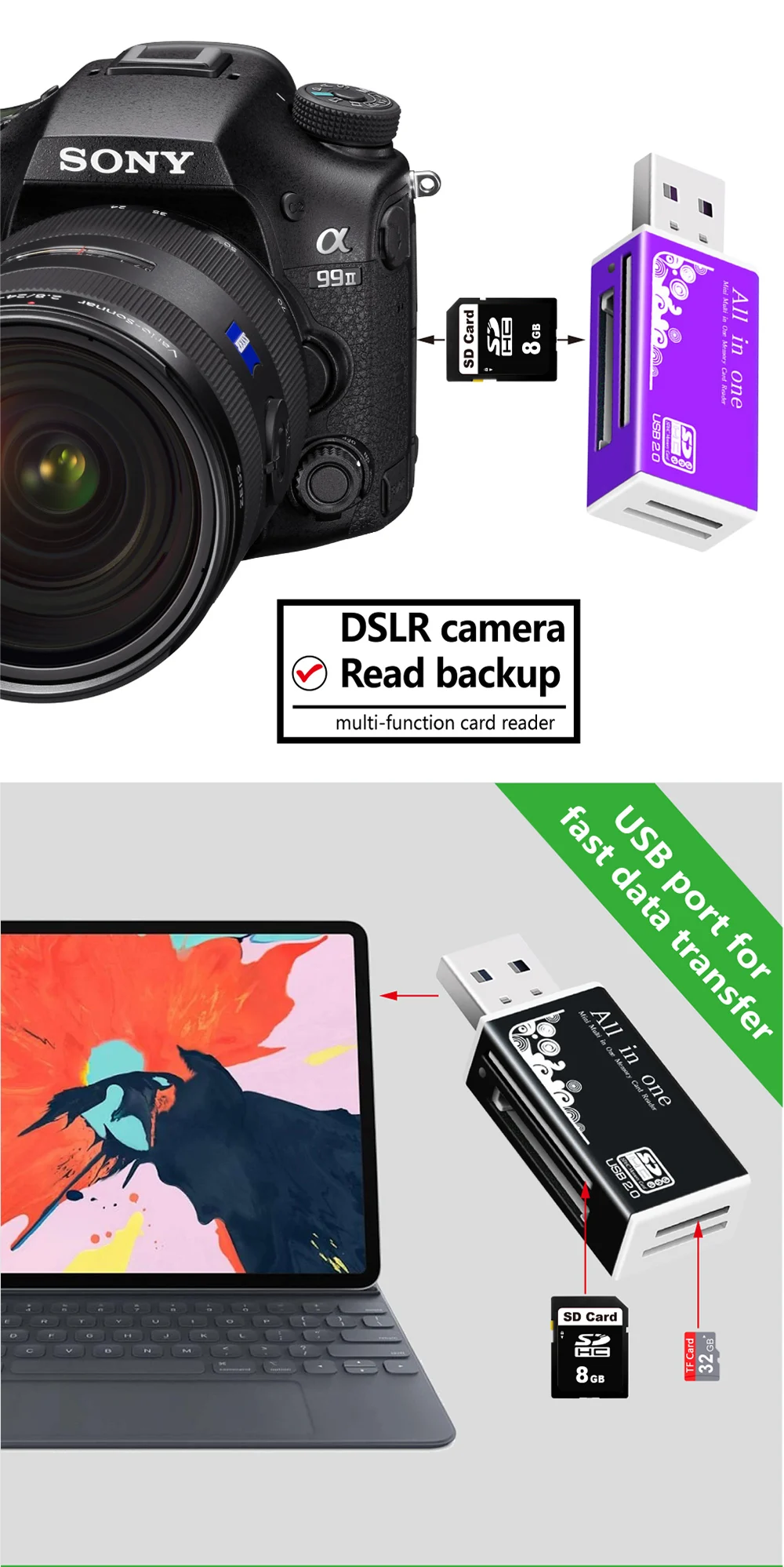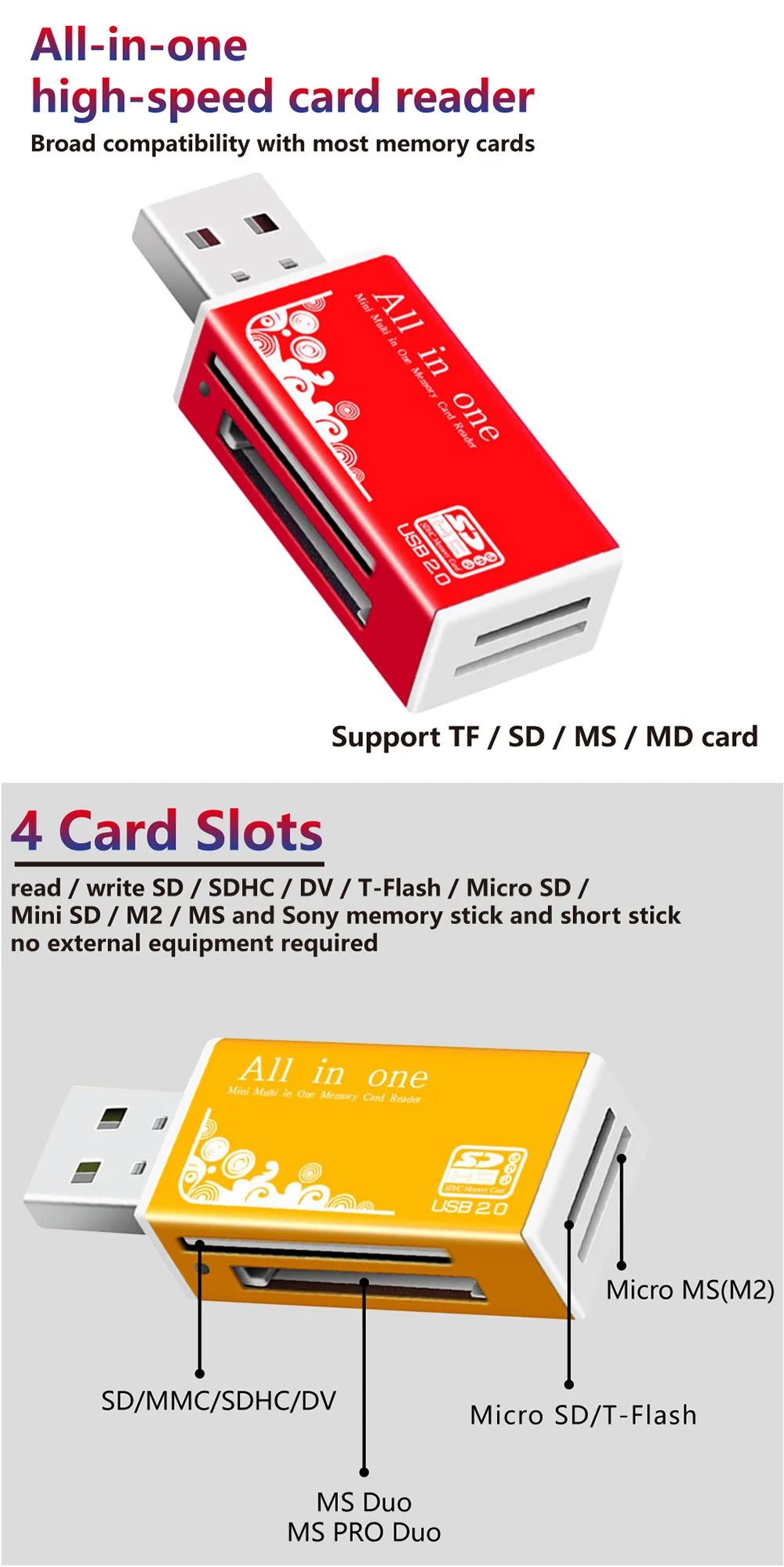 Comprar Multi todo en 1 Micro USB 2,0, adaptador de lector de tarjetas de memoria para Micro HC TF M2 MMC MS PRO DUO