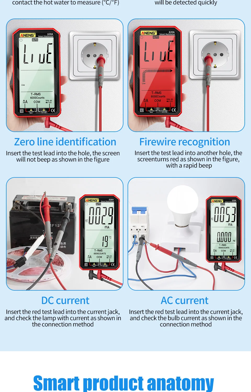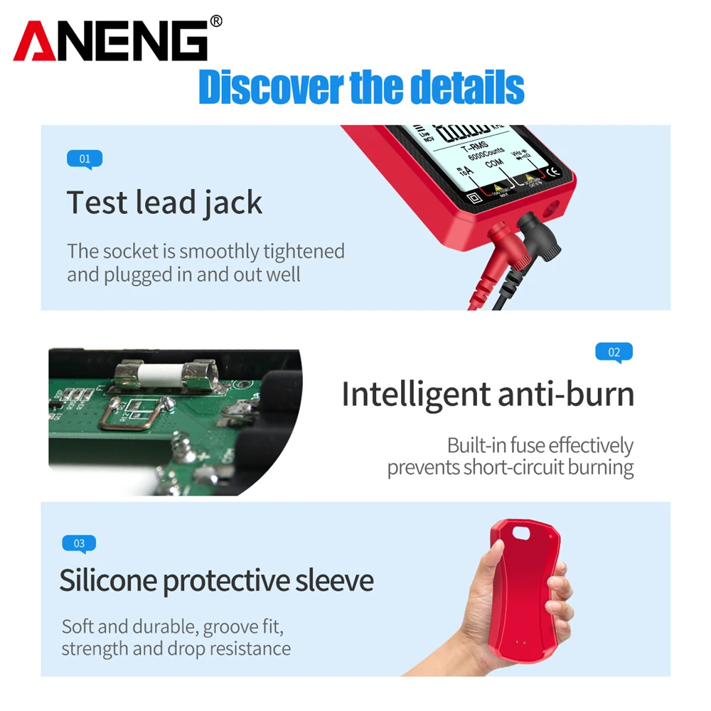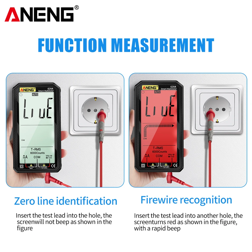 Comprar Multímetro de 6000 recuentos, prueba de multímetro ANENG 620A, probador de voltaje CA/CC, corriente 10A, resistencia de línea de fuego cero/condensador/medidores de diodo