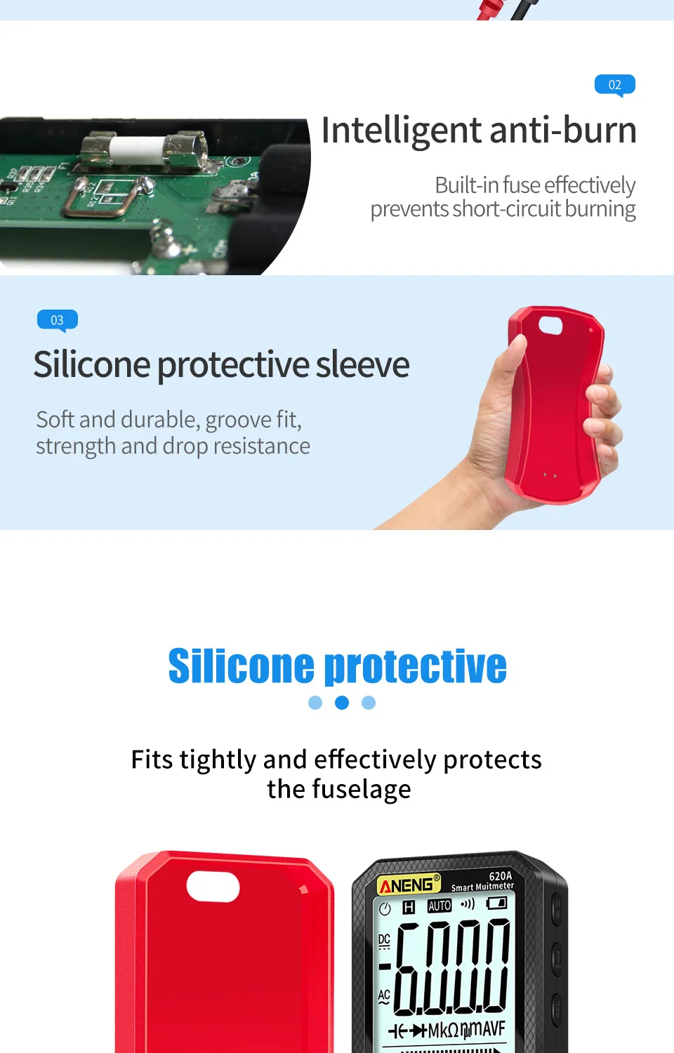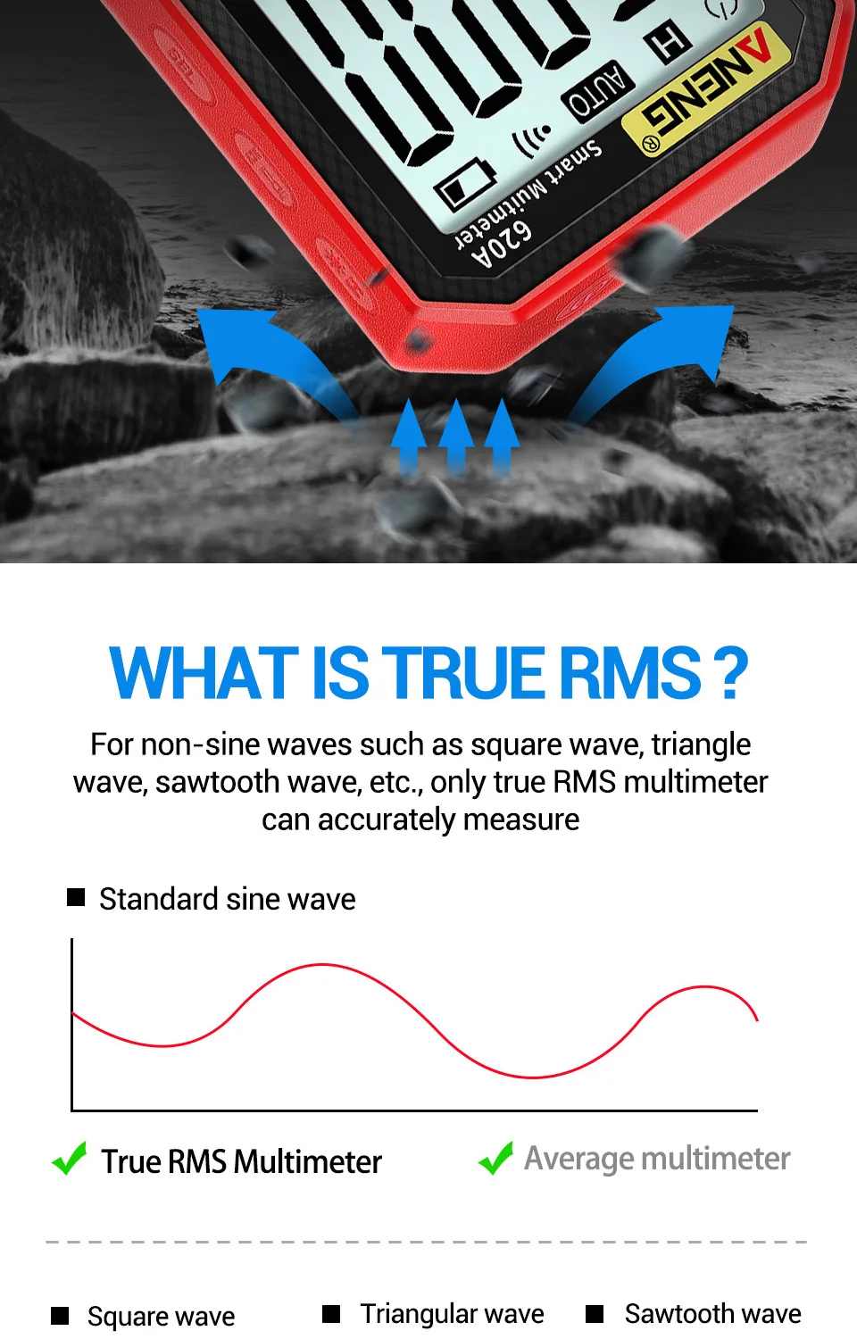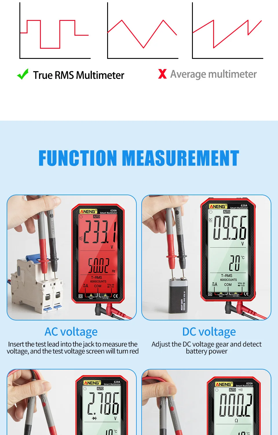 Comprar Multímetro de 6000 recuentos, prueba de multímetro ANENG 620A, probador de voltaje CA/CC, corriente 10A, resistencia de línea de fuego cero/condensador/medidores de diodo
