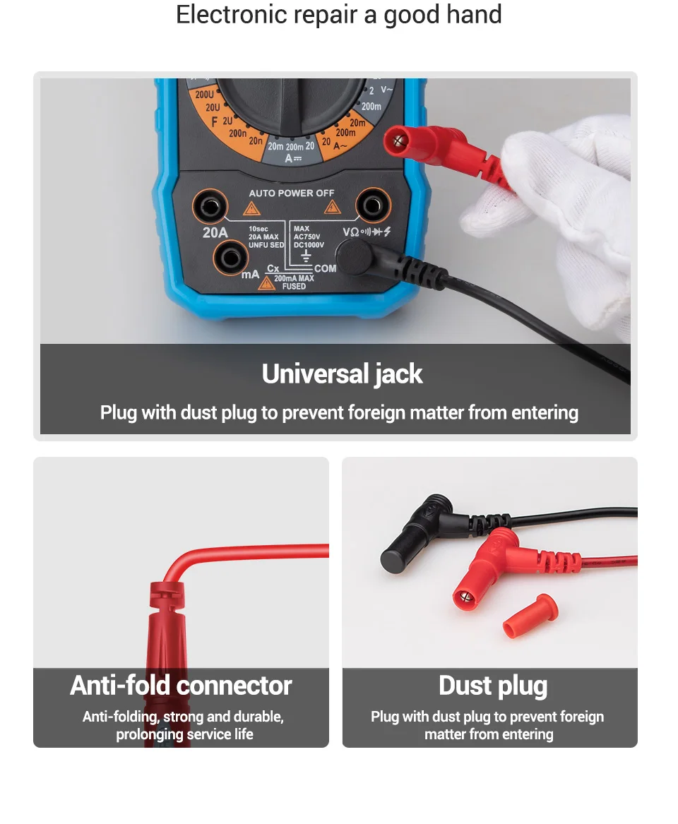 Ampliamente compatible: este kit de cables de prueba es compatible con prácticamente cualquier medidor equipado con conectores de entrada tipo banana cubiertos.