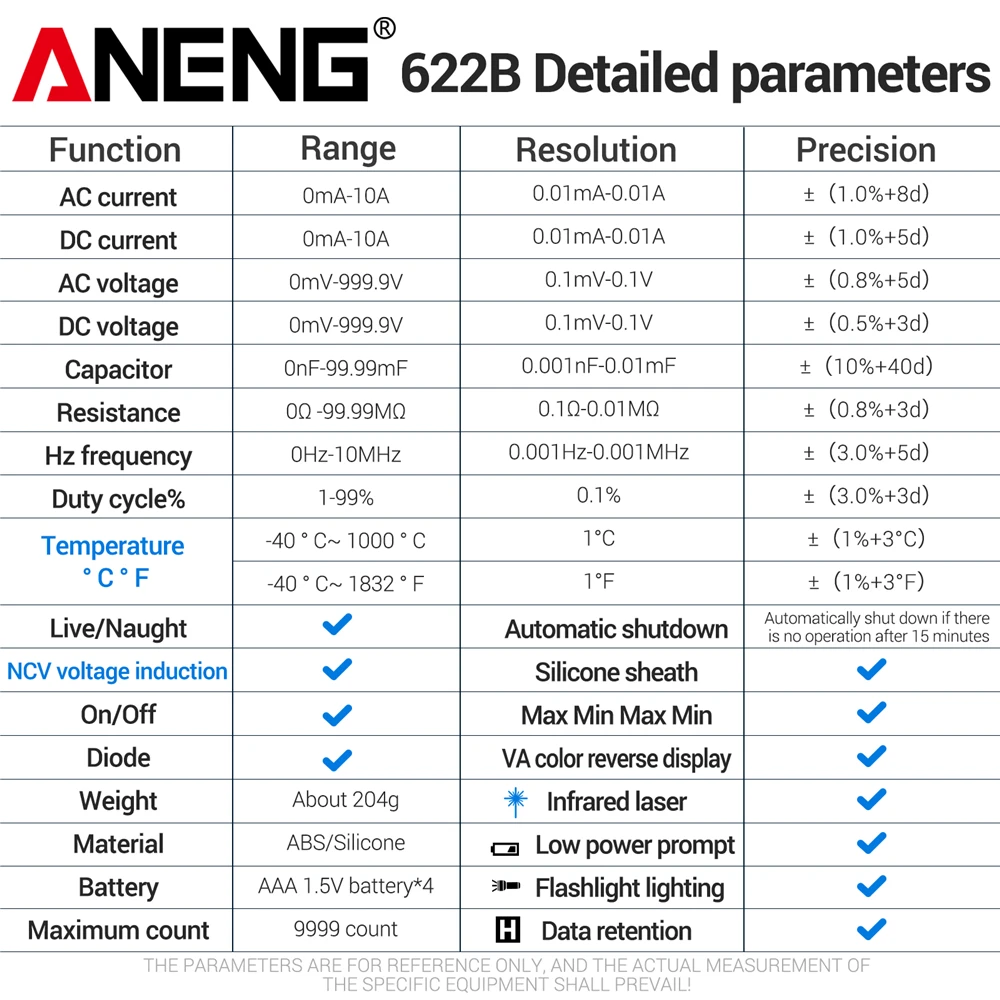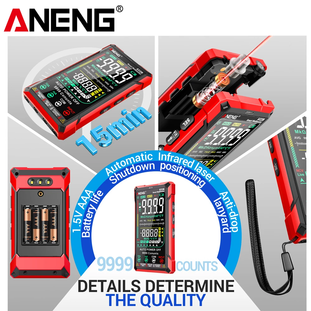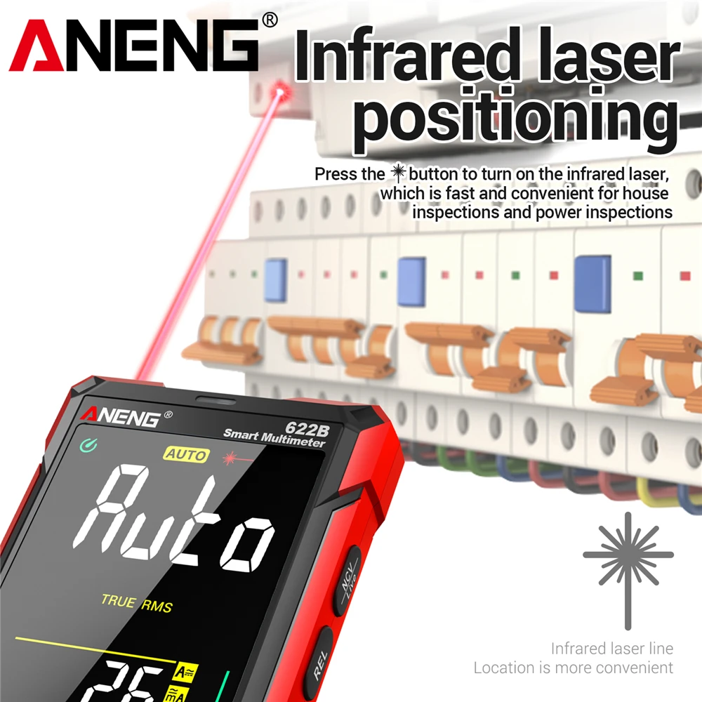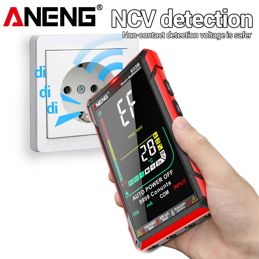 Comprar Multímetro ANENG 622B, medidor de voltaje CA/CC profesional inteligente de 9999 recuentos, probador de corriente con pantalla a Color VA, herramientas de diodo de temperatura Ohm