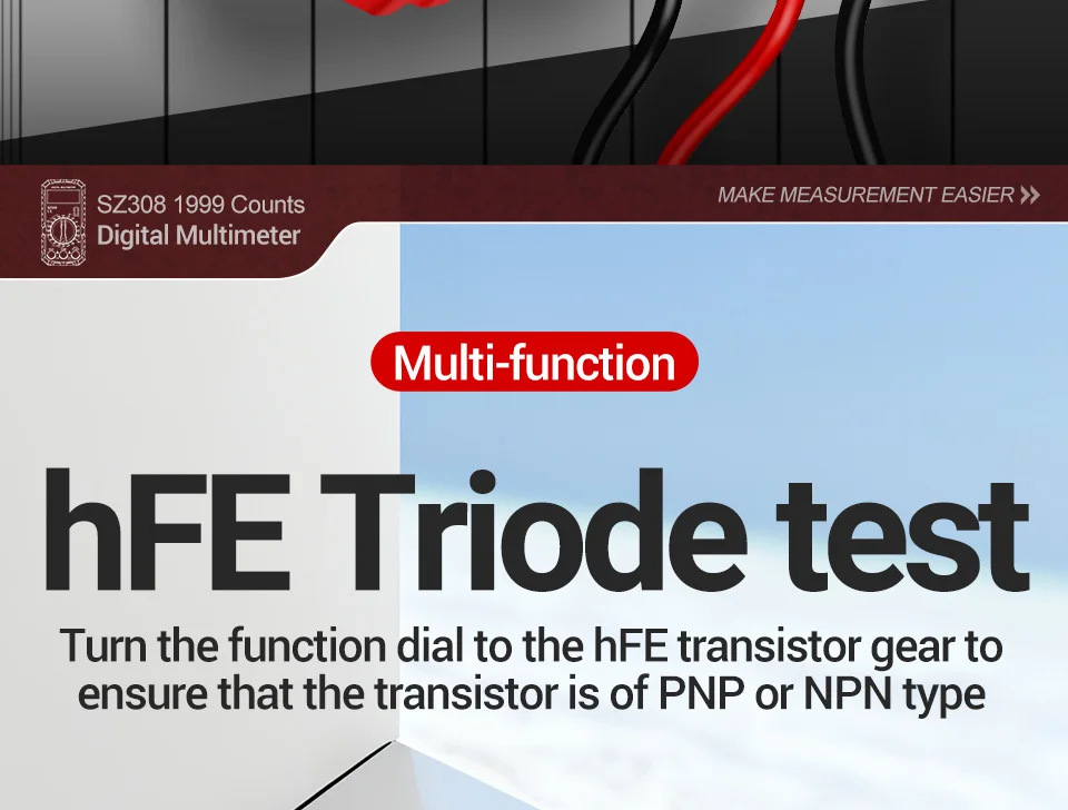 Probador hFE, medidor compacto, electrónica de bricolaje, 1000 V CC, reparación del hogar