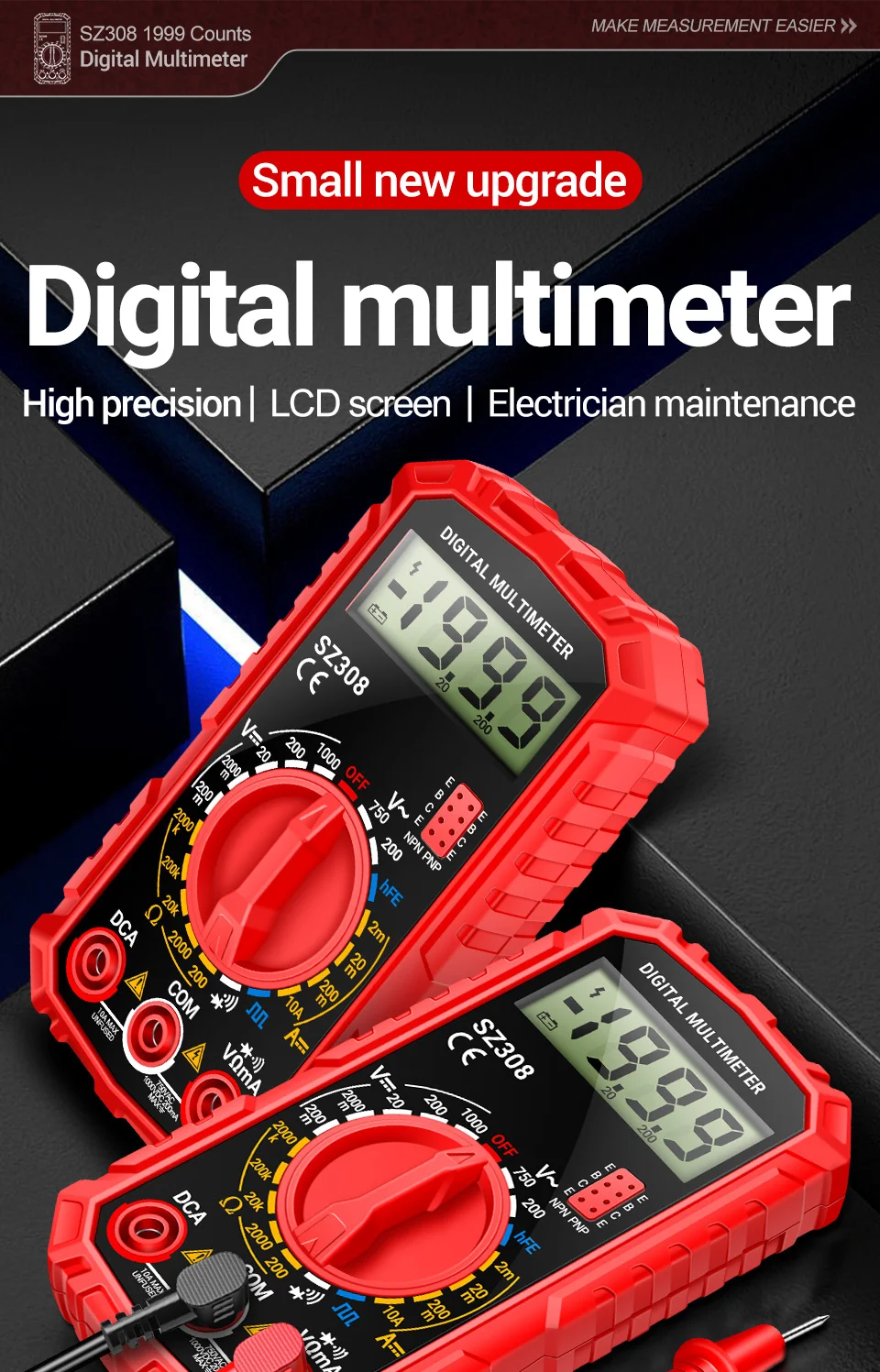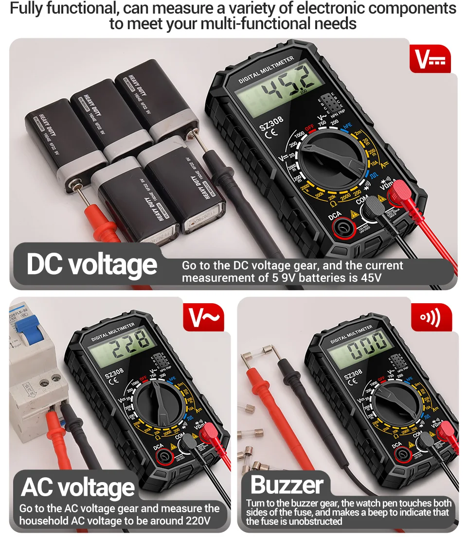 Multímetro digital, ANENG SZ308, probador de alto voltaje, herramienta de reparación de automóviles, kit de electricista,