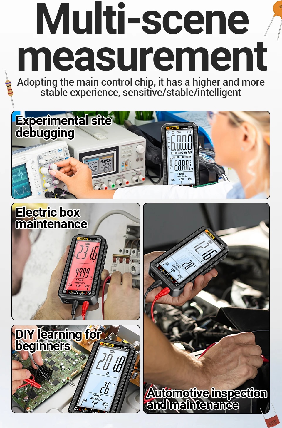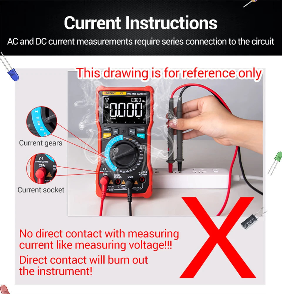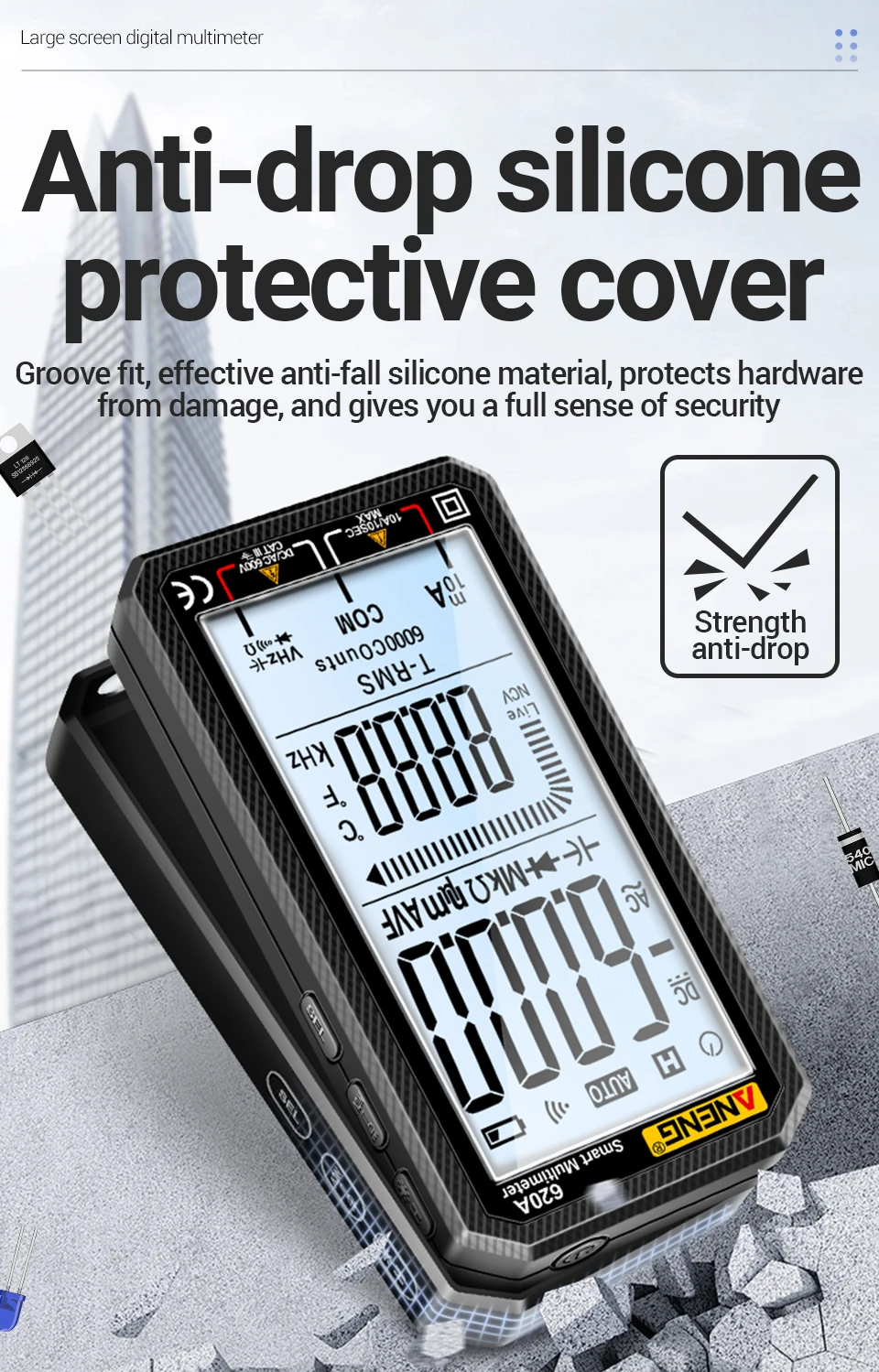 "¿Por qué correr el riesgo de golpes o lecturas incorrectas?¡Este multímetro ANENG 620A lo hace TODO, de forma segura y precisa!