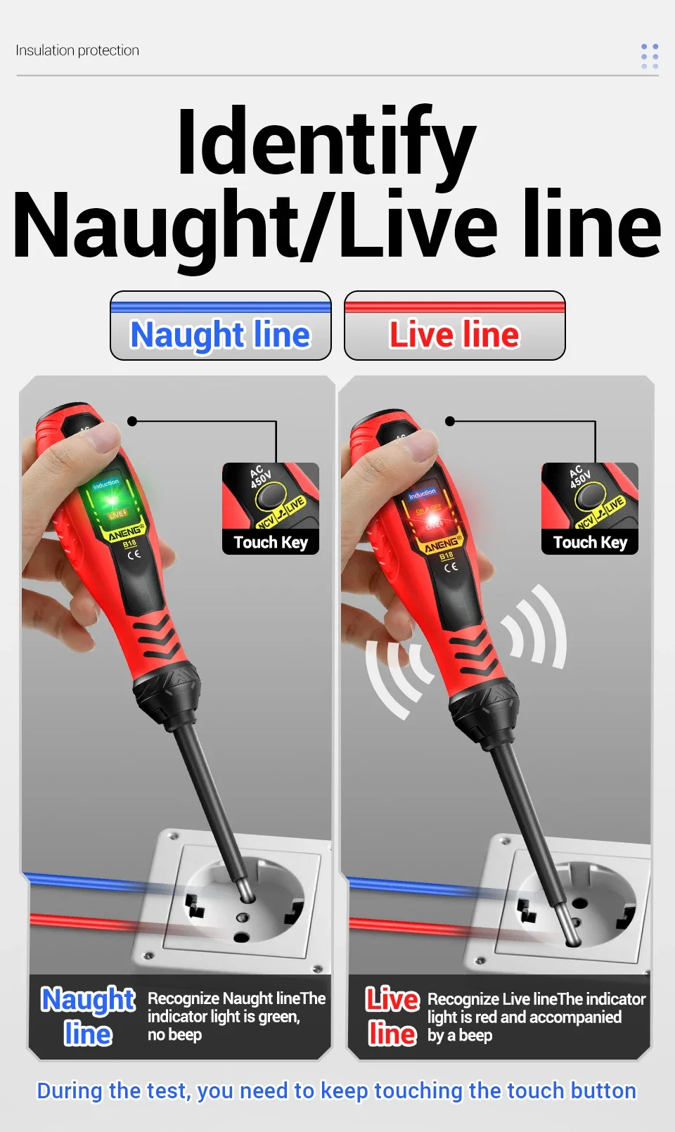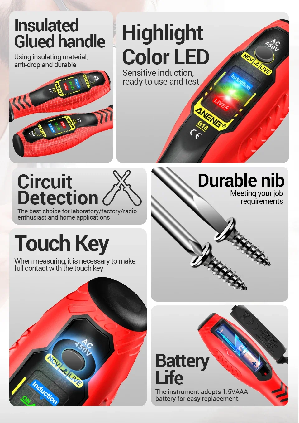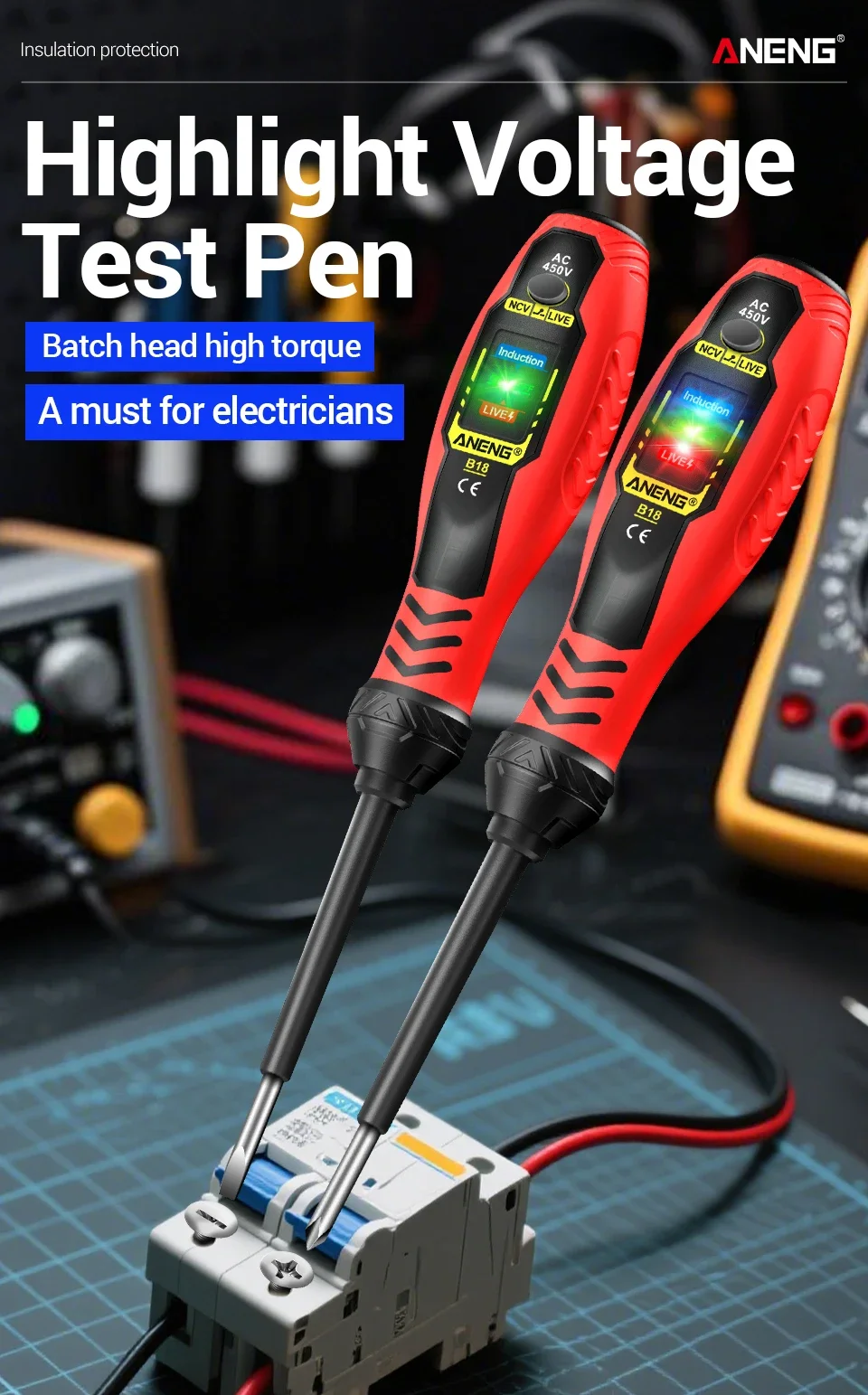Probador de voltaje ANENG B18, destornillador de palabra/cruz, pluma de prueba de inducción NCV, herramienta de encendido y apagado de medición de voltaje travieso/línea en vivo