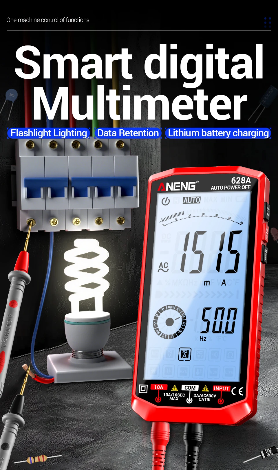 Multímetro Digital inteligente ANENG 628A + B18 Destornillador de palabra/cruz Probador de voltaje NCV Inducción Pen medidora de línea móvil/en línea viva