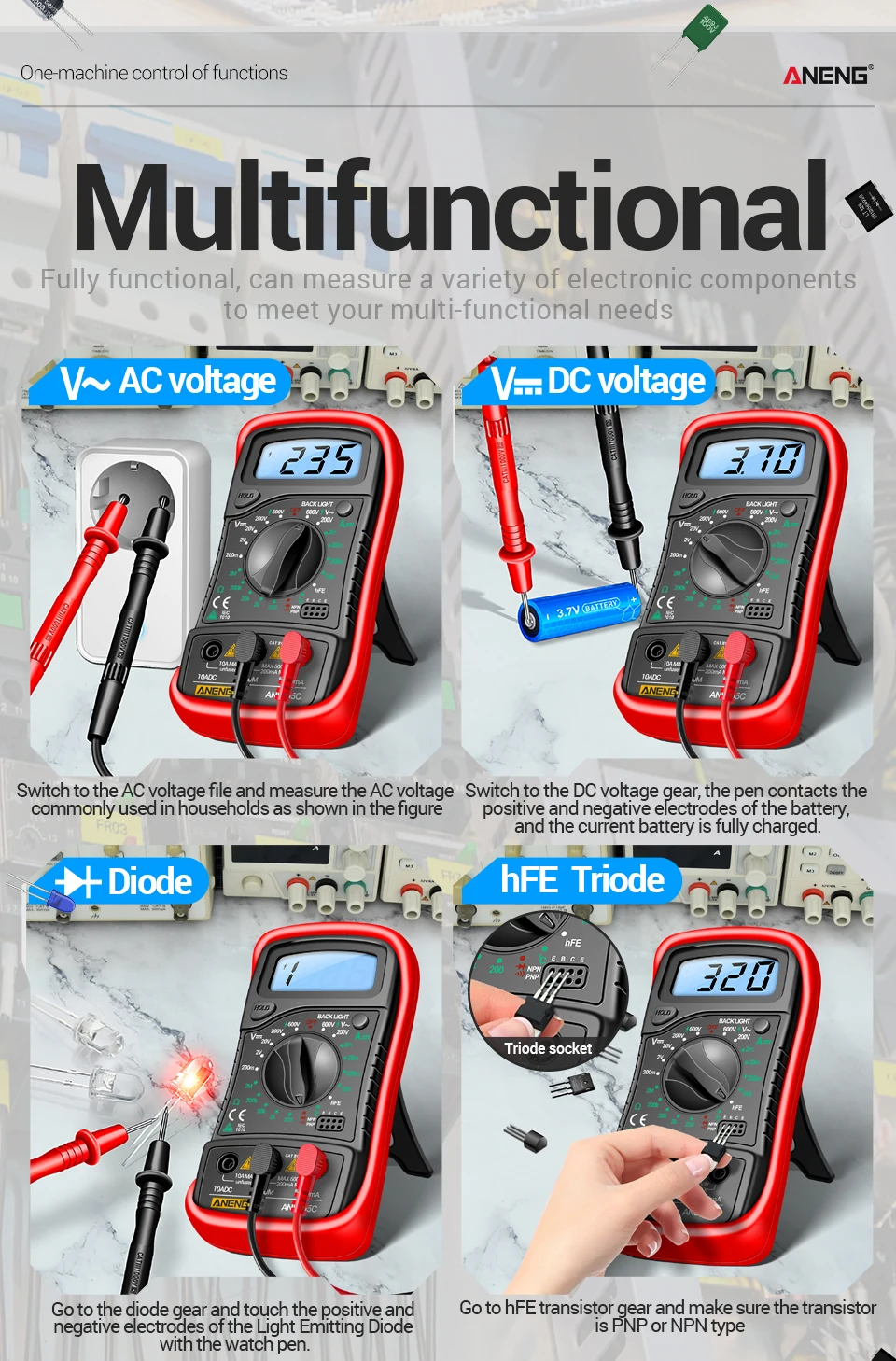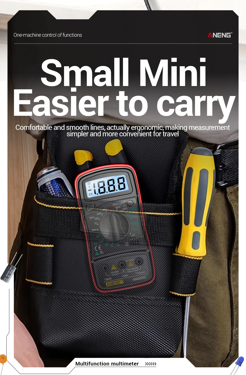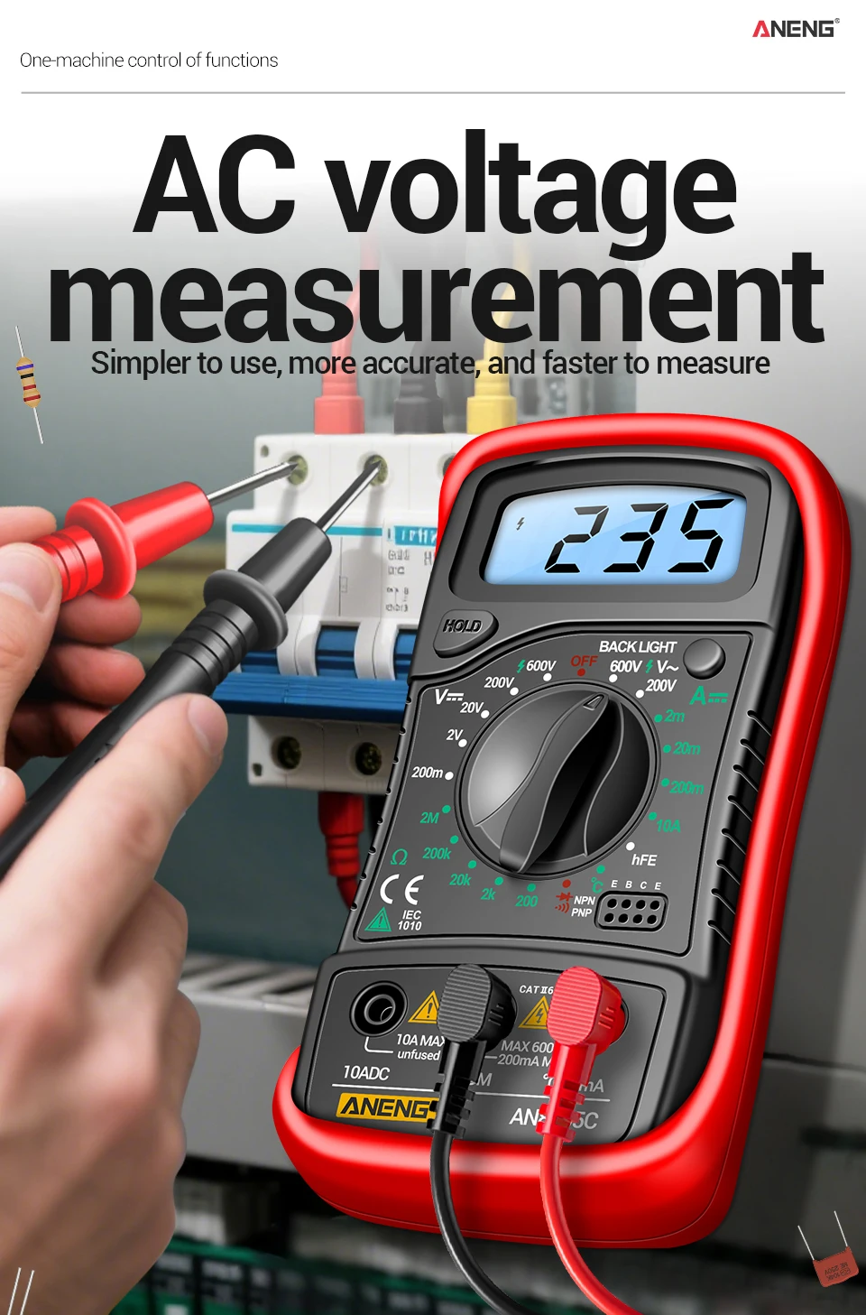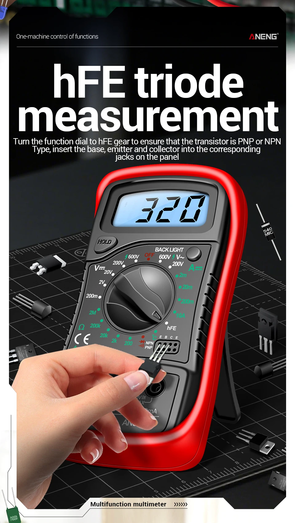 ANENG AN8205CMultímetro digital Medidor de voltaje CA/CC Resistencia de corriente CC -40℃~1000℃ Herramientas de prueba de retroiluminación LCD de diodo de temperatura