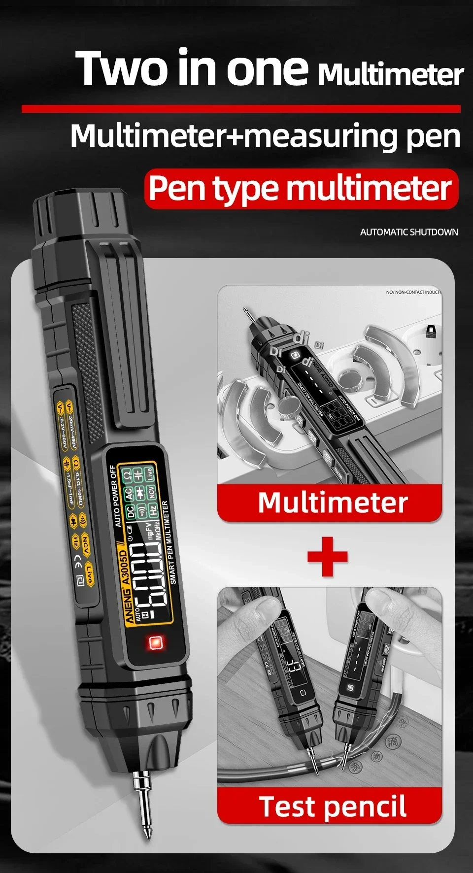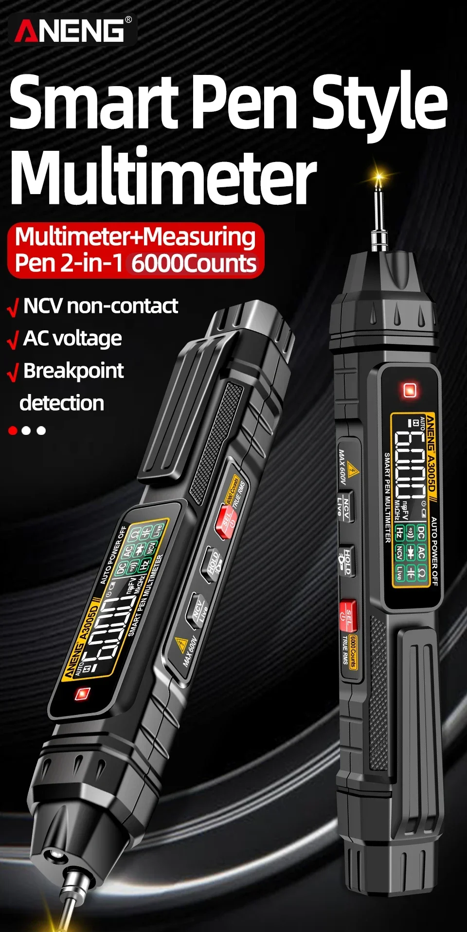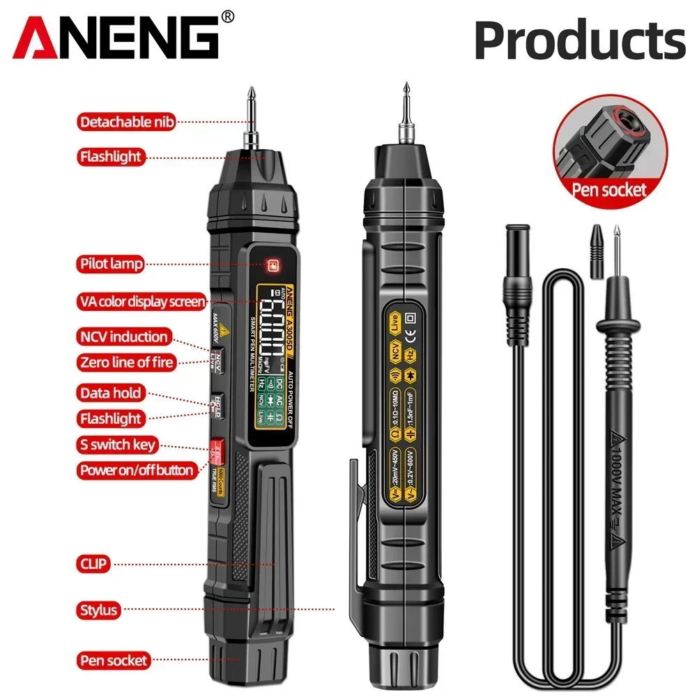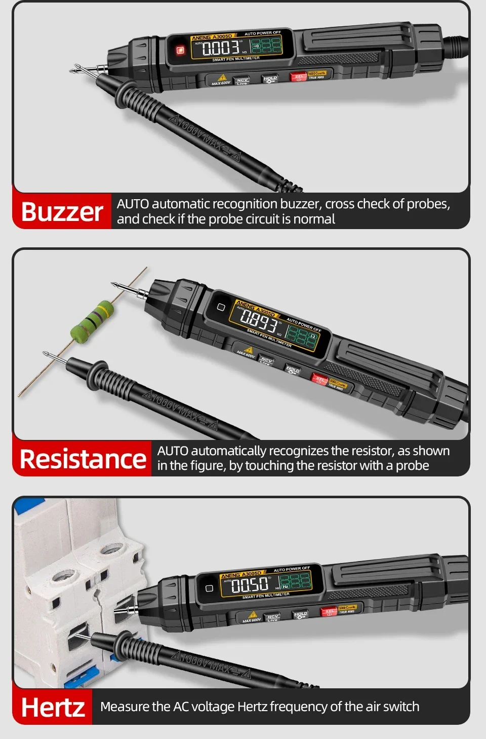 Comprar Multímetro Digital tipo rotulador ANENG Mini probador de voltaje CA/CC sin contacto 6000 recuentos valores eficaces verdaderos NCV Hz Ohm herramientas de diodo