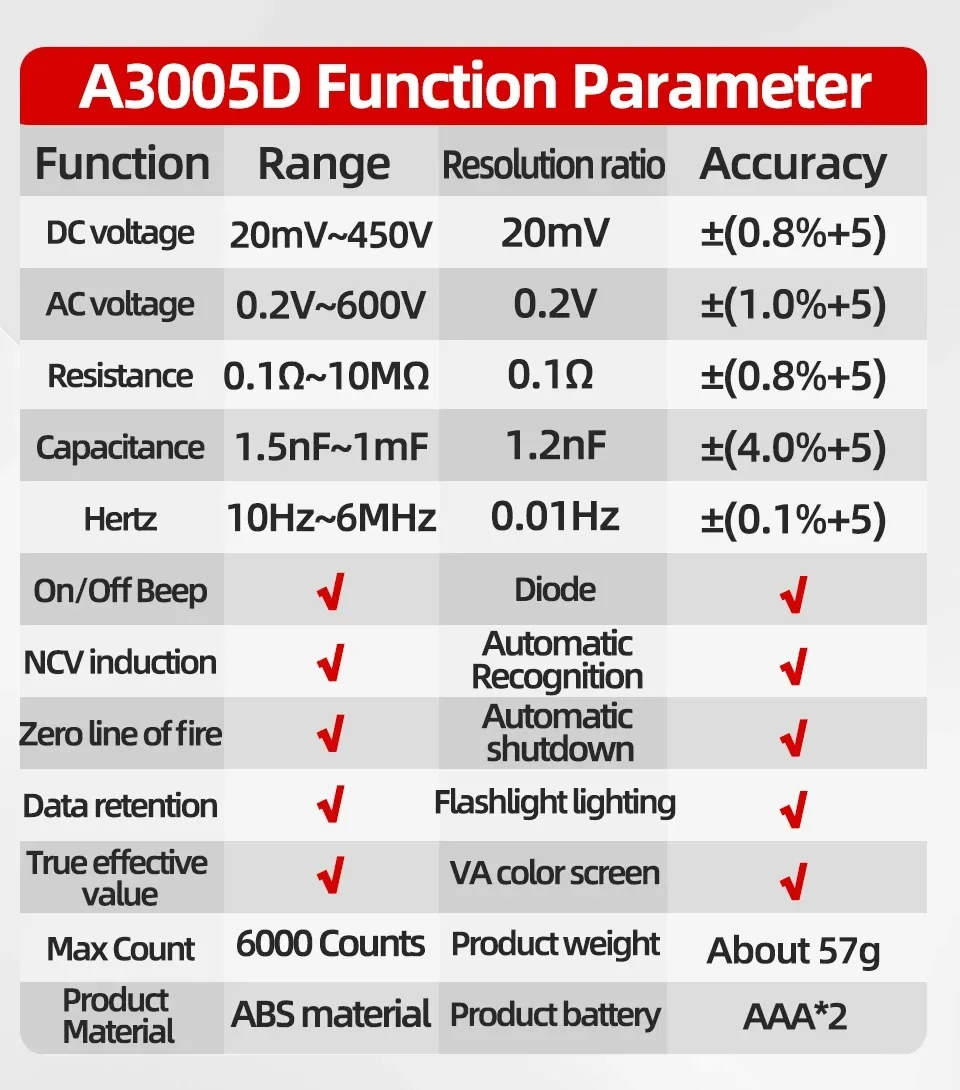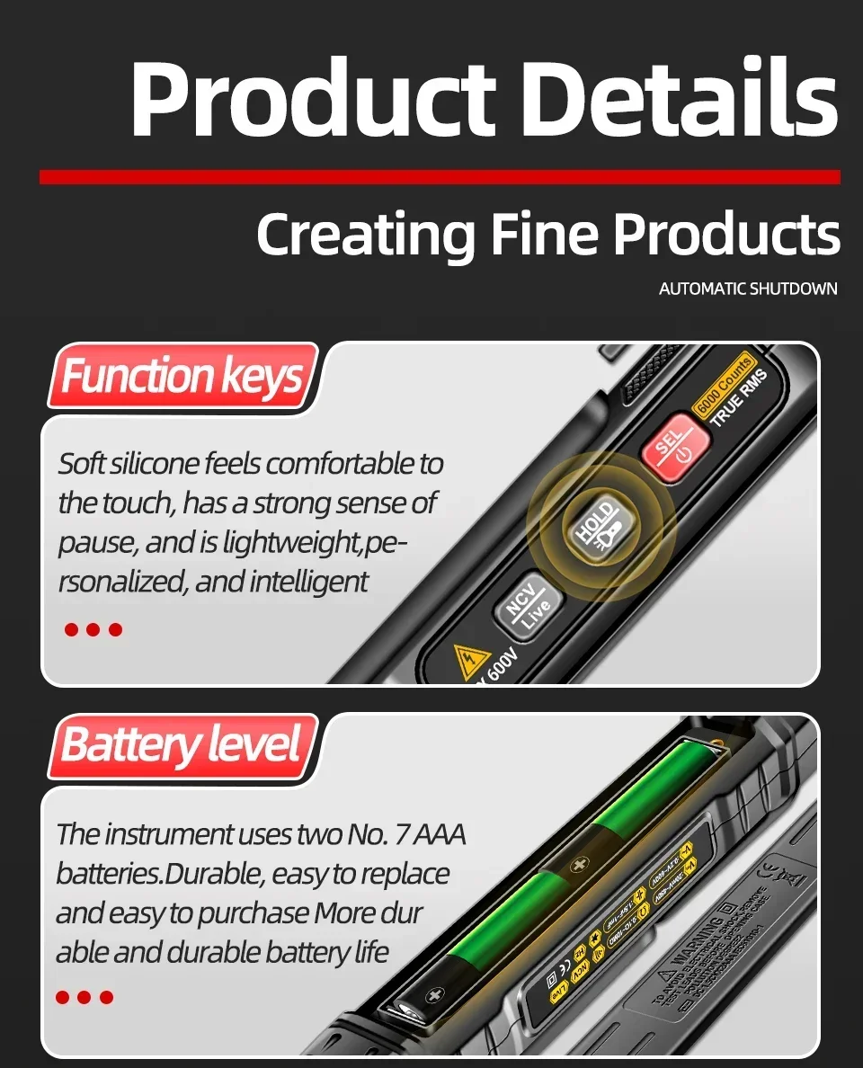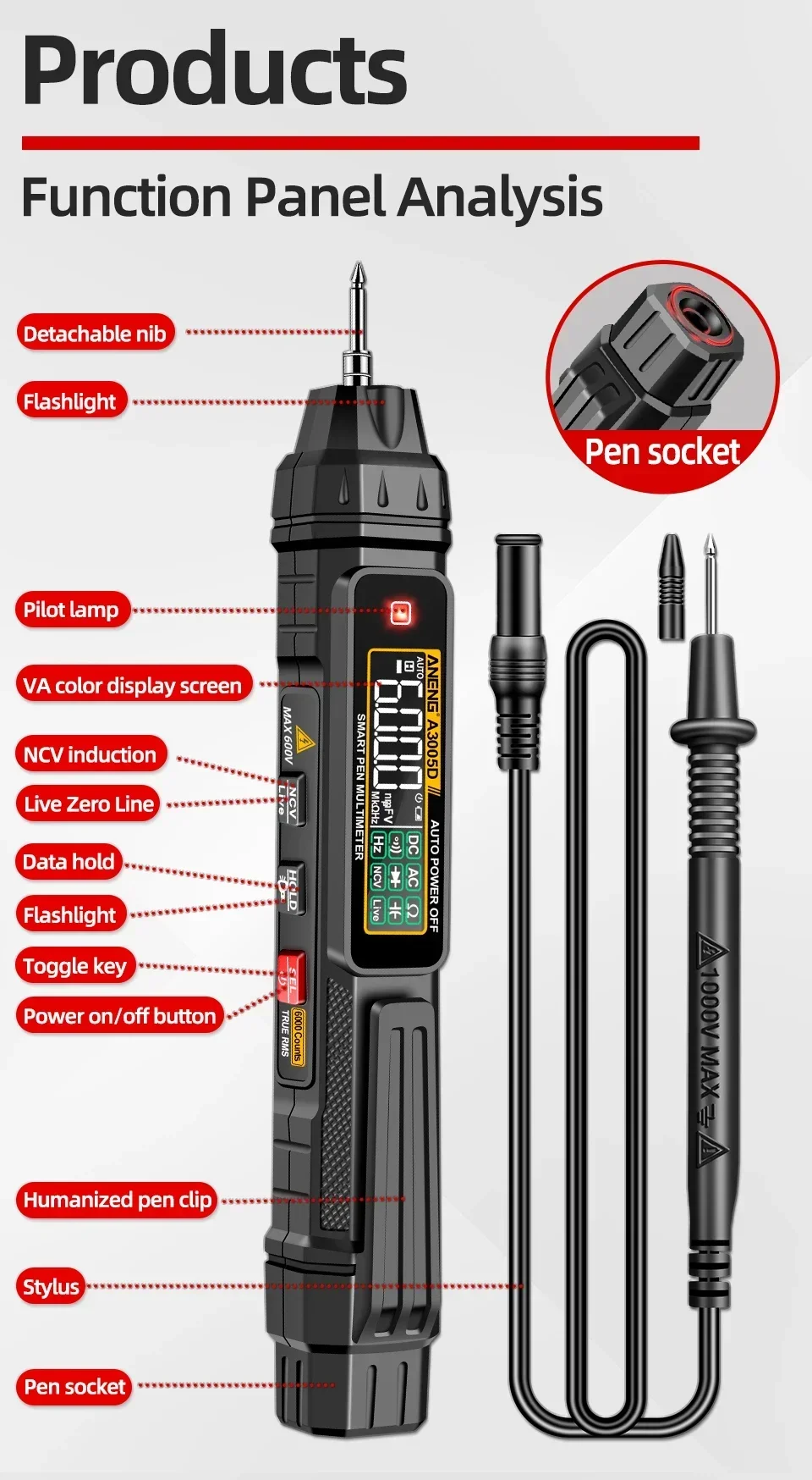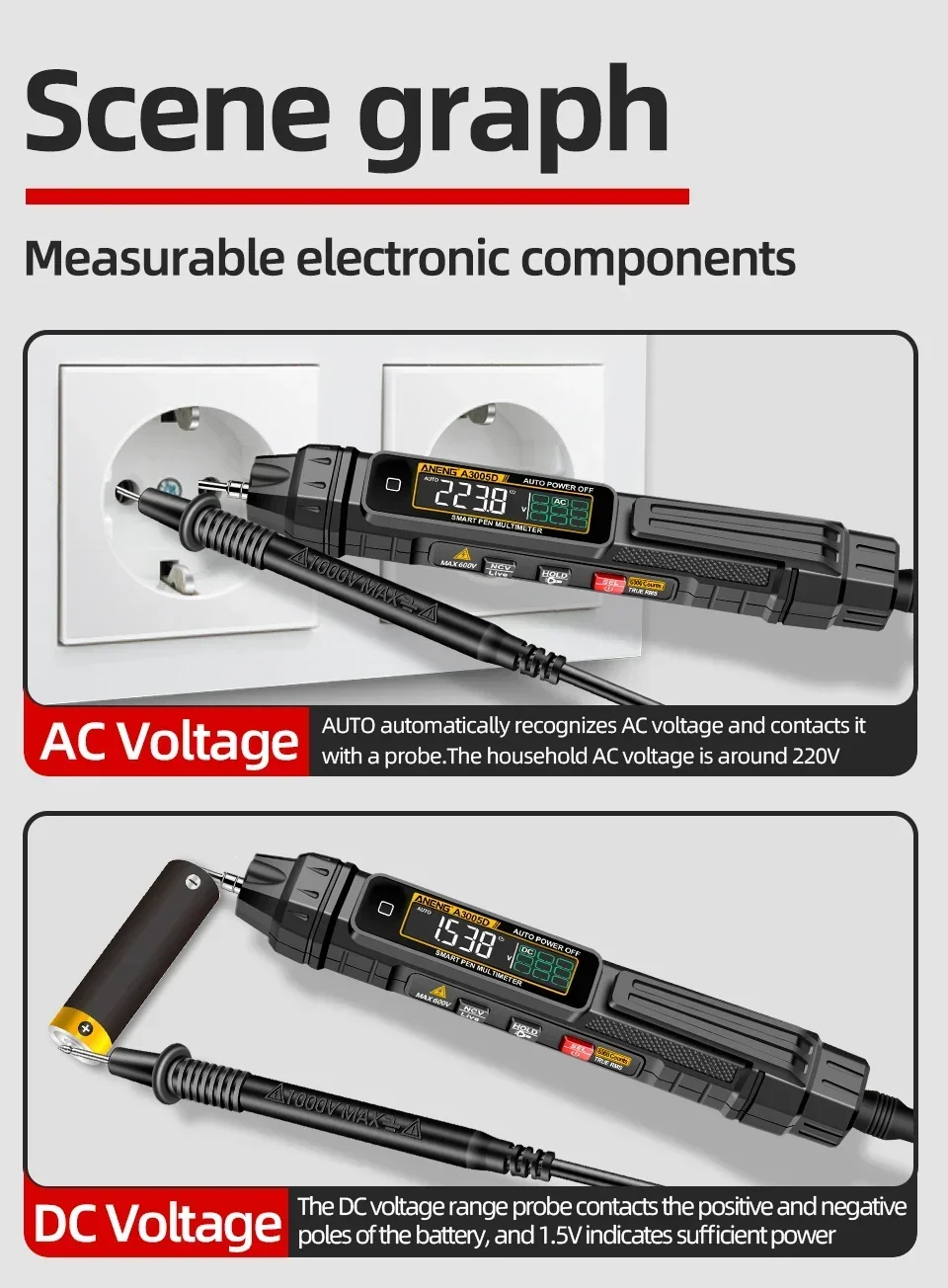 Comprar Multímetro Digital tipo rotulador ANENG Mini probador de voltaje CA/CC sin contacto 6000 recuentos valores eficaces verdaderos NCV Hz Ohm herramientas de diodo