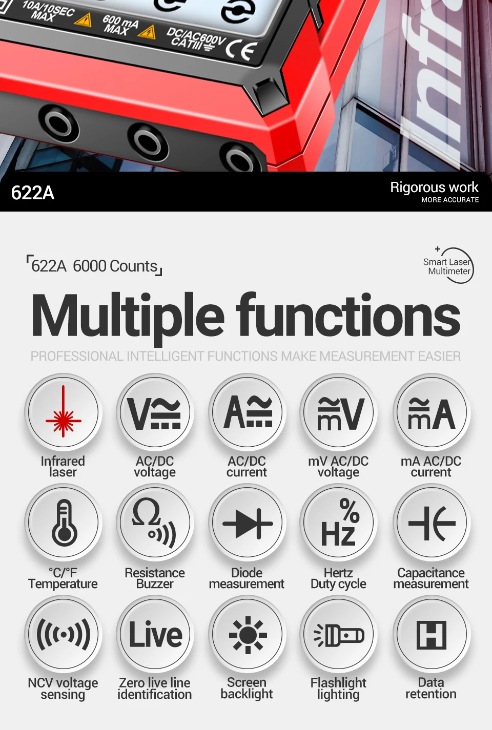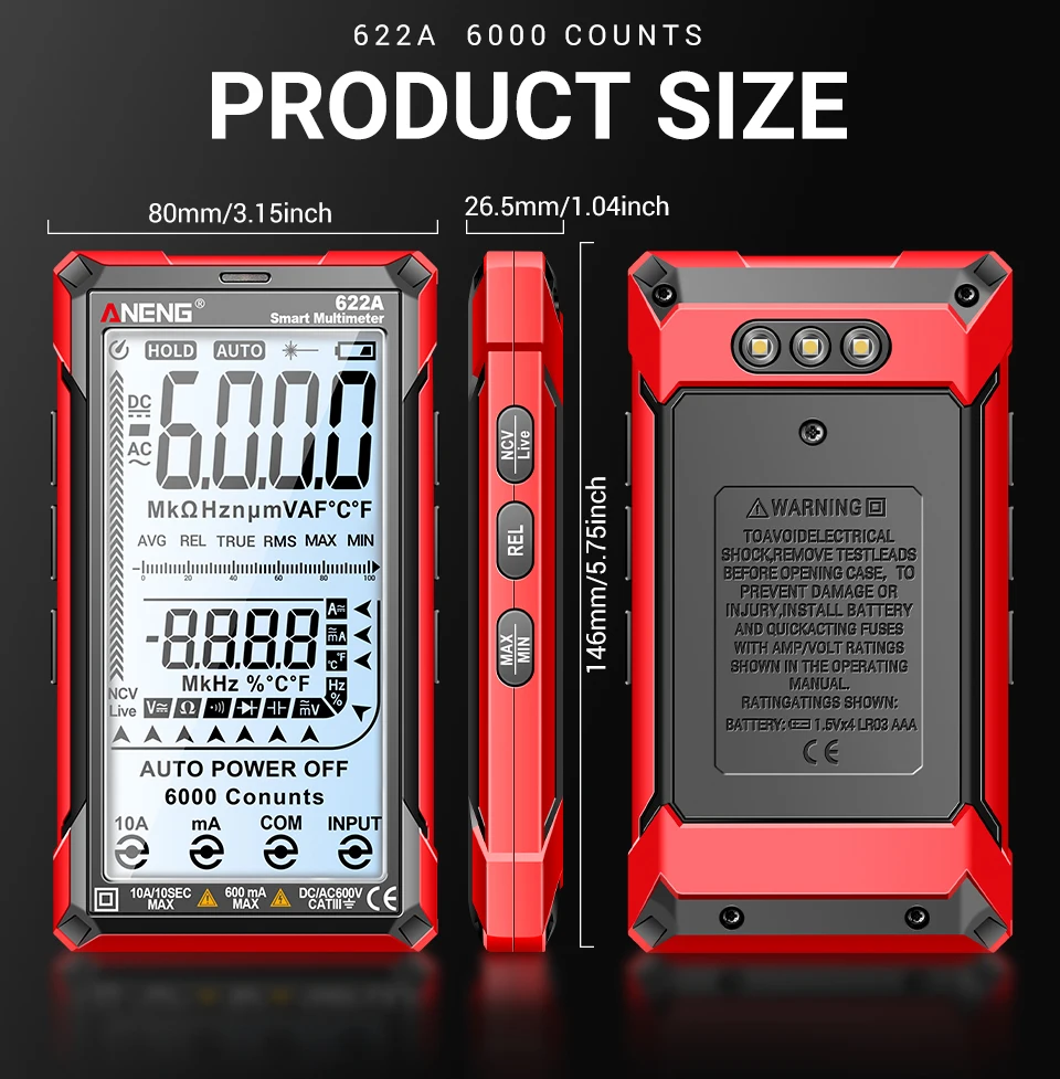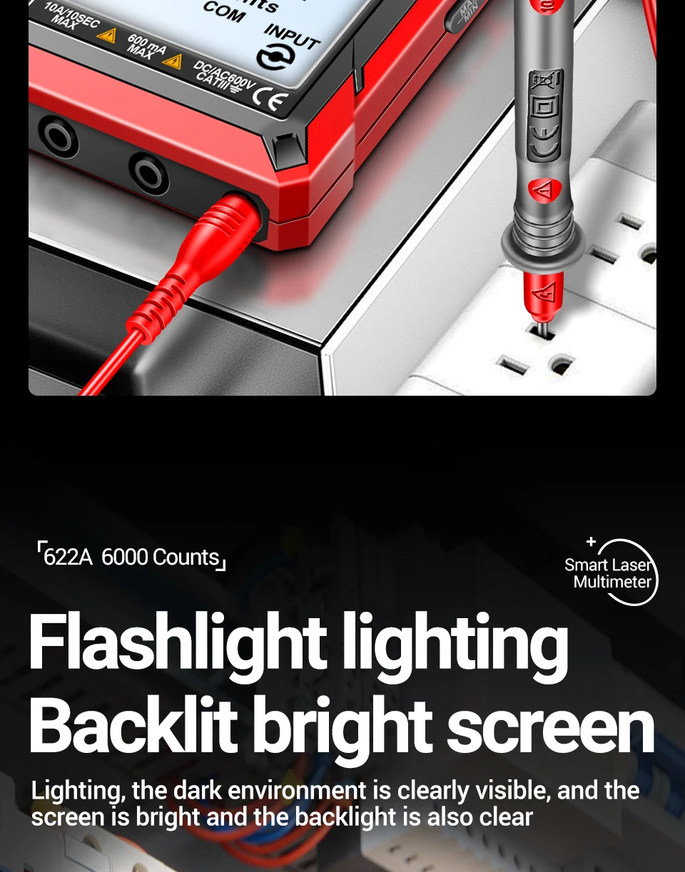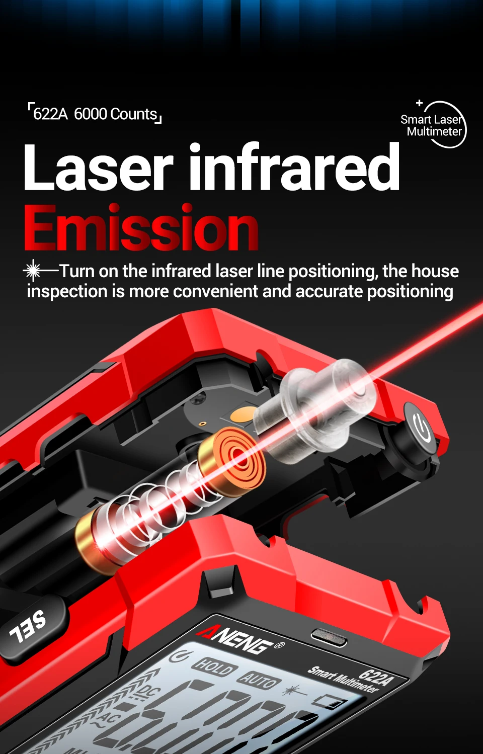 Comprar Multímetro infrarrojo láser Digital profesional ANENG 622A 6000 recuentos probador de voltaje CA herramienta de condensador de resistencia NCV de corriente CC
