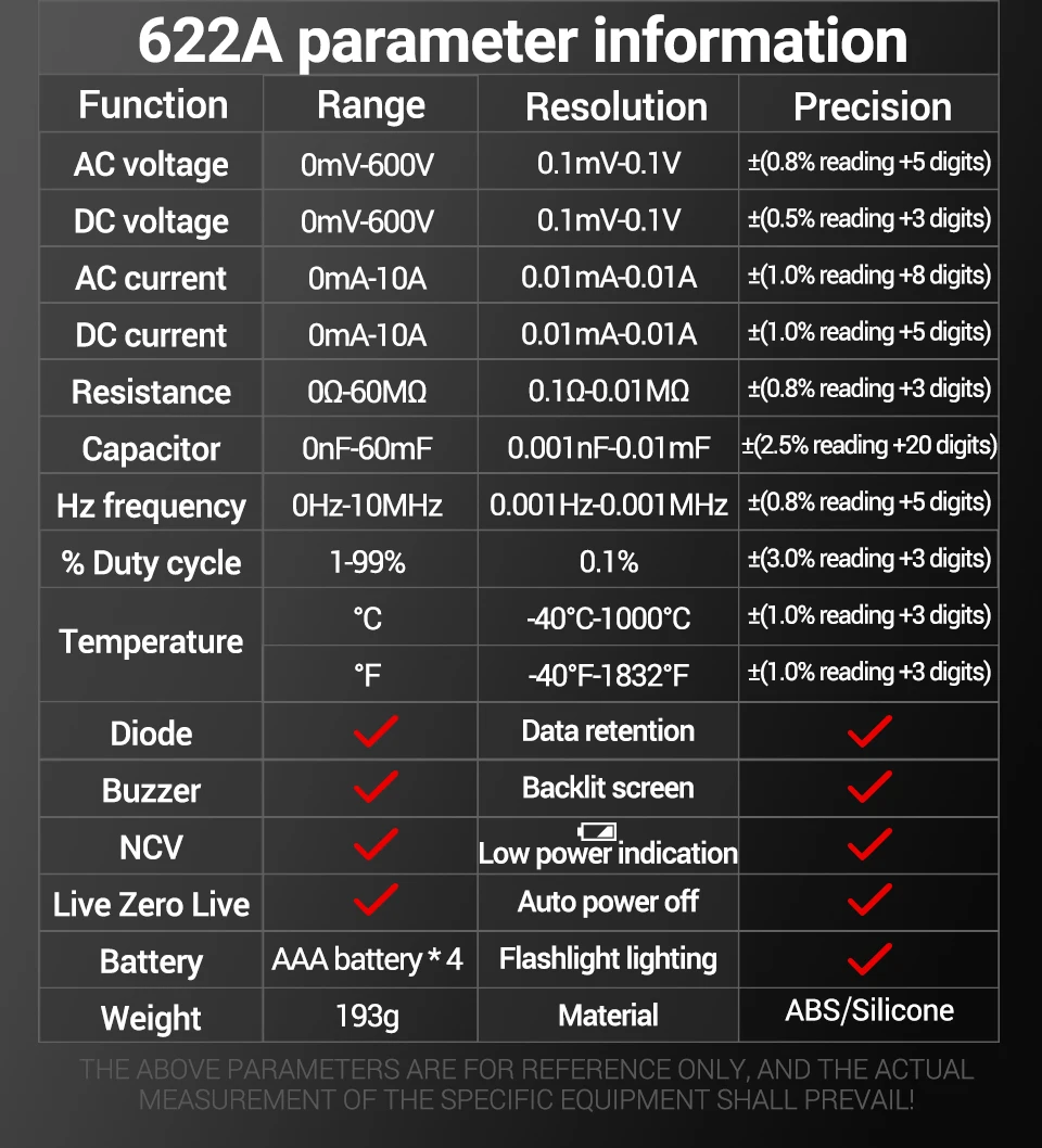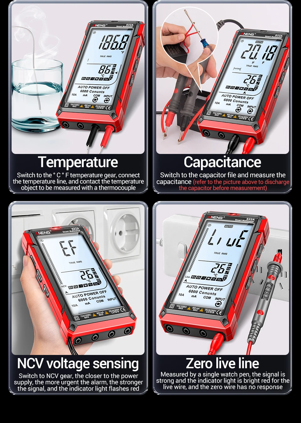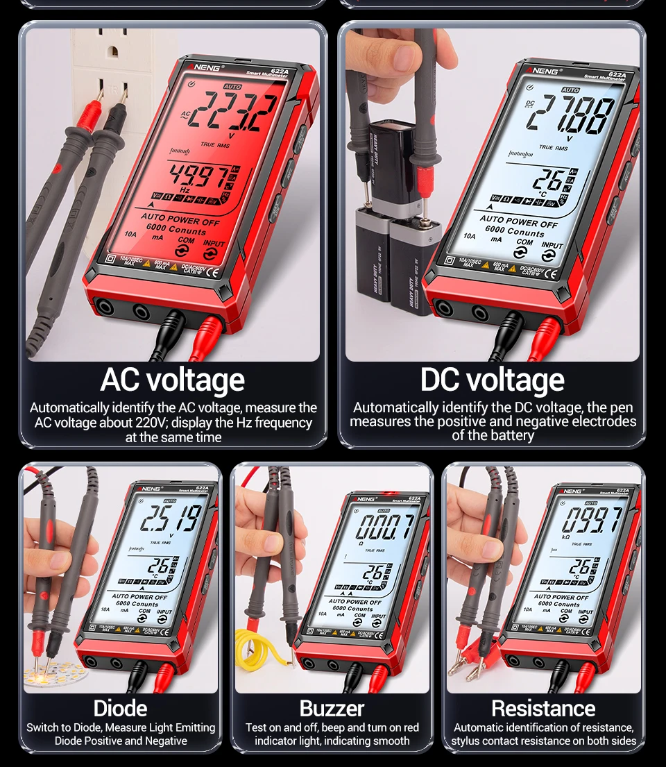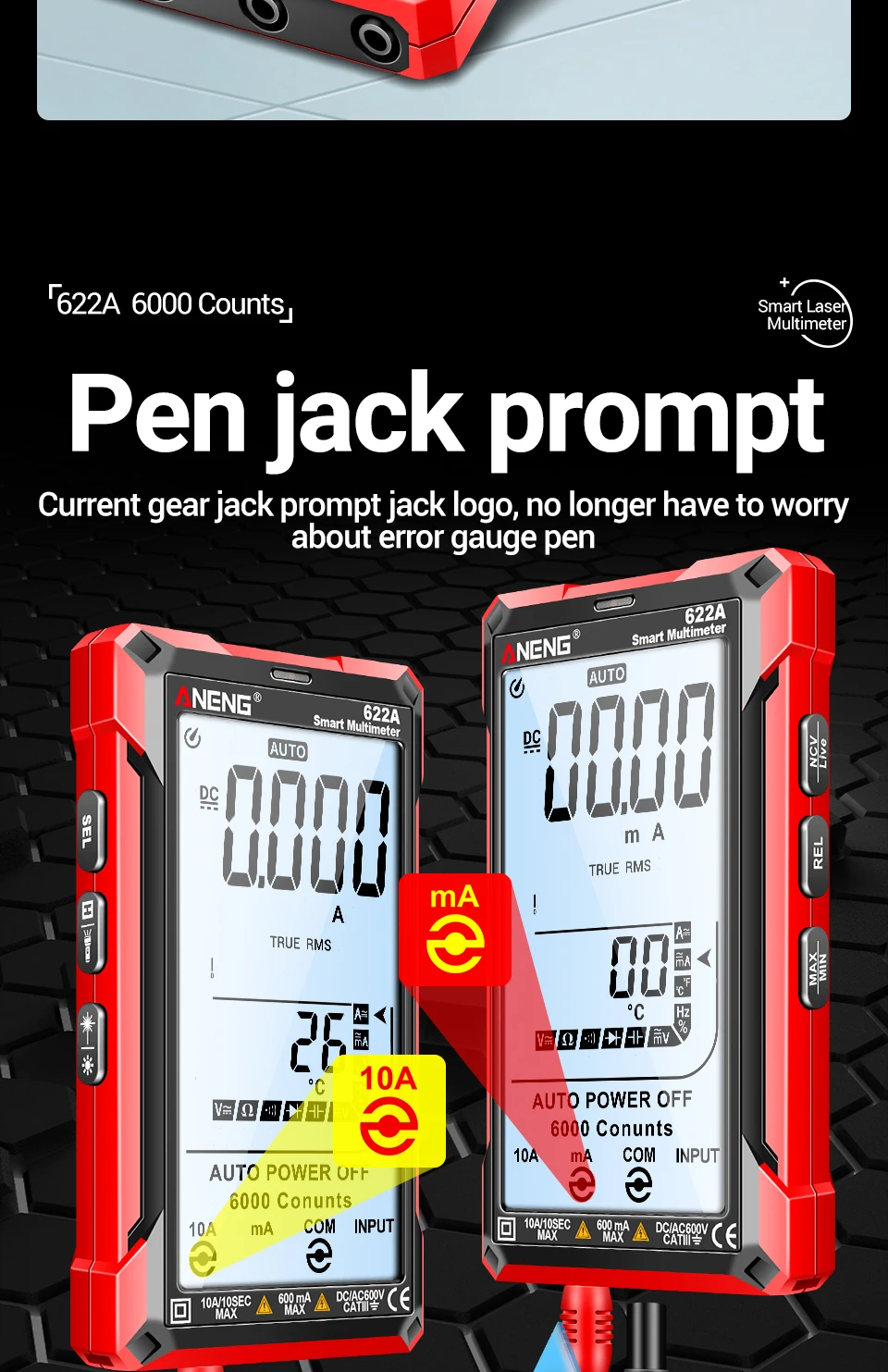 Comprar Multímetro infrarrojo láser Digital profesional ANENG 622A 6000 recuentos probador de voltaje CA herramienta de condensador de resistencia NCV de corriente CC